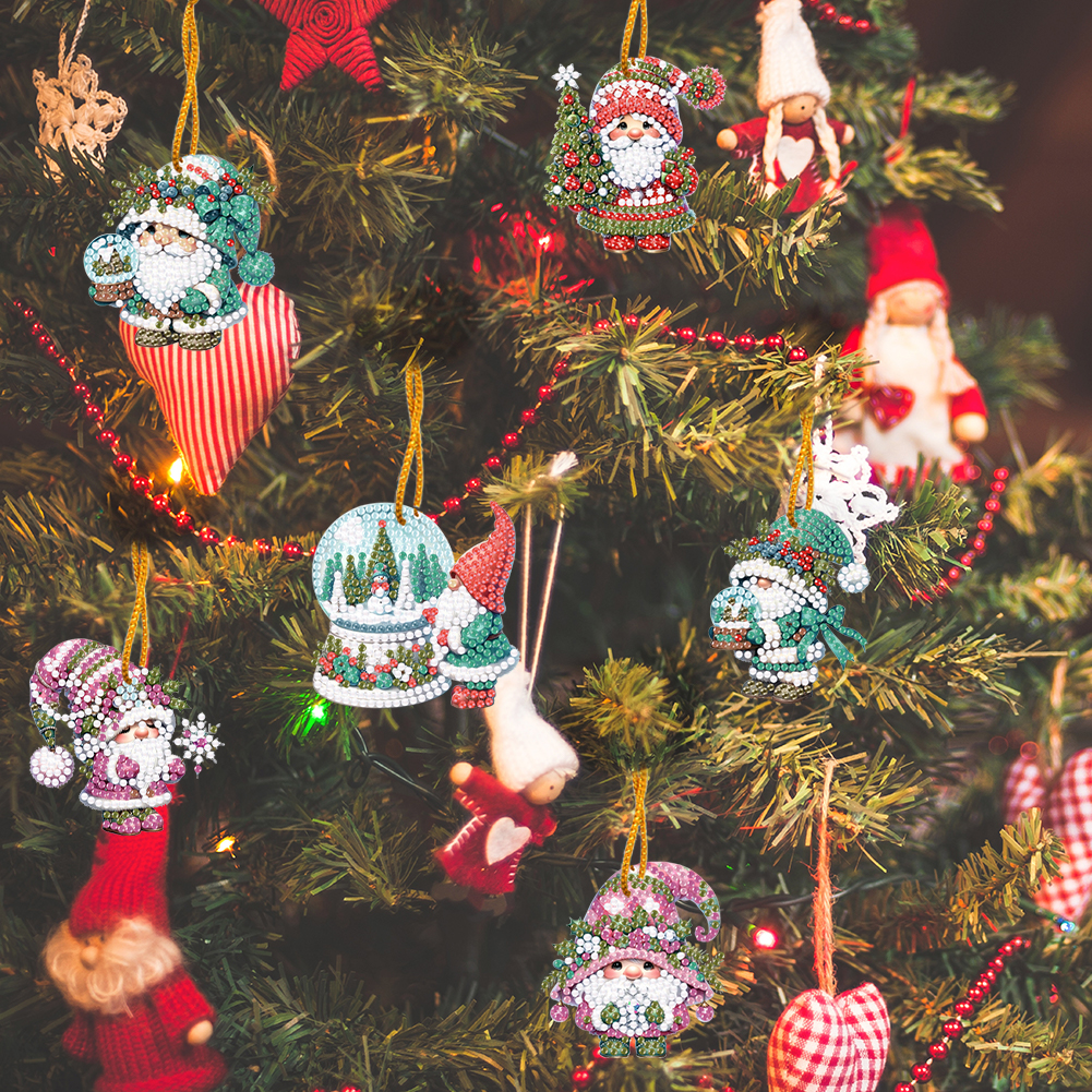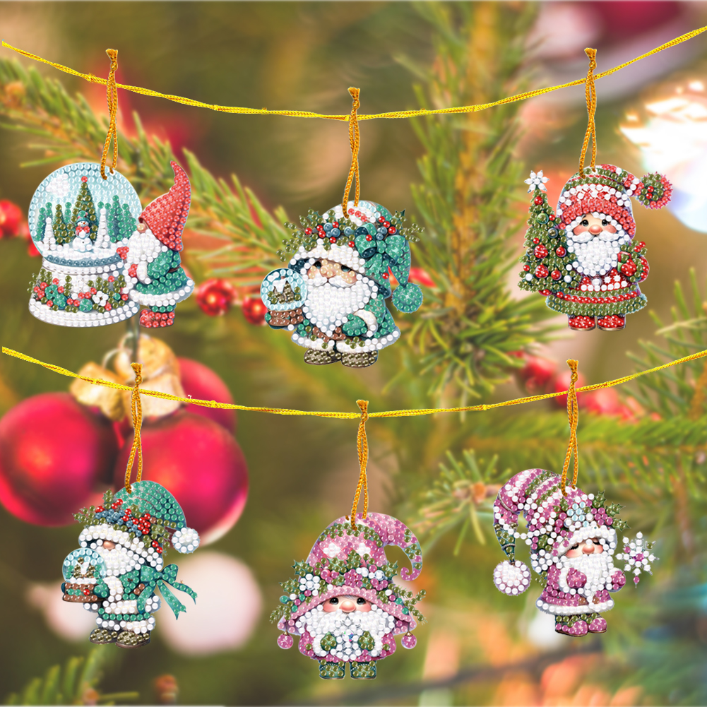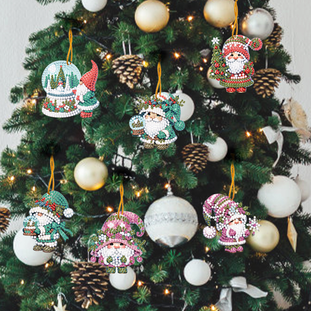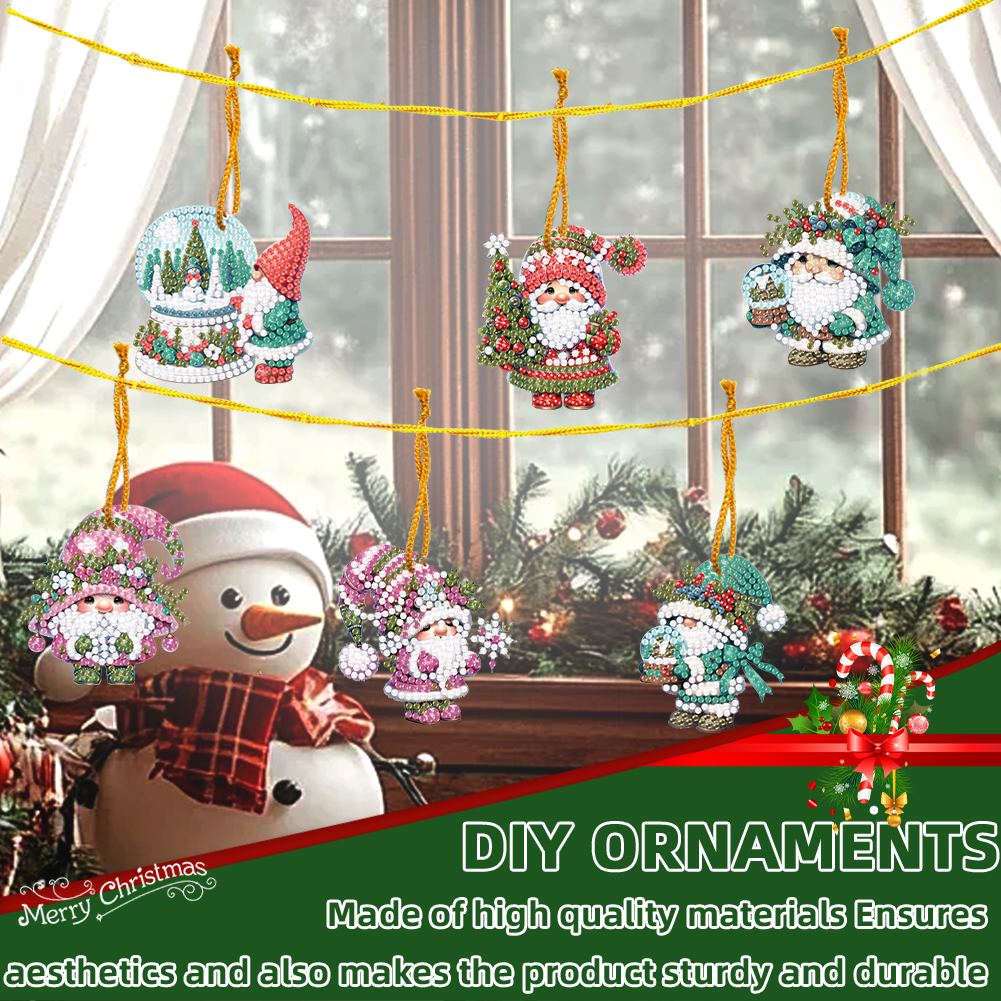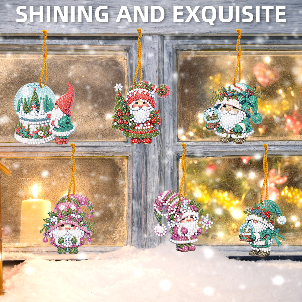 6pcs Xmas Gnome 2D Flat DIY Diamond Painting Art Pendant Wall Door Decoration