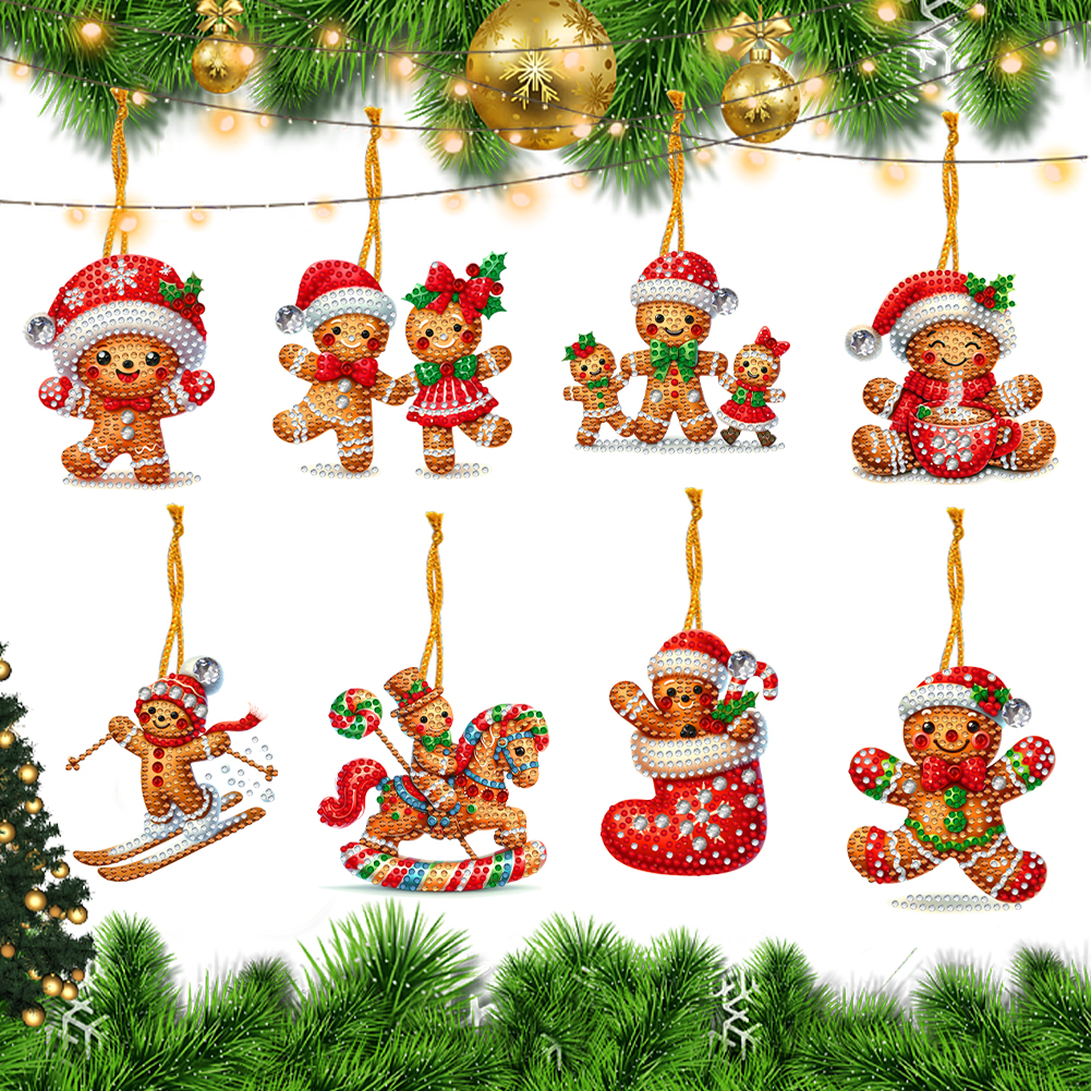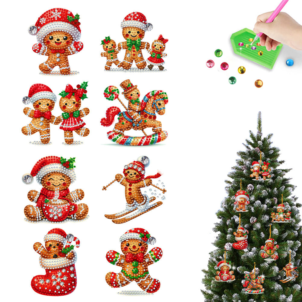 8Pcs DIY Christmas Gingerbread Man Acrylic Special Shaped Christmas Theme Diamond Painting Hanging Decorations