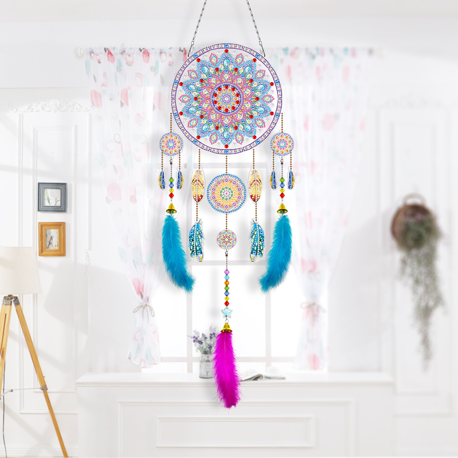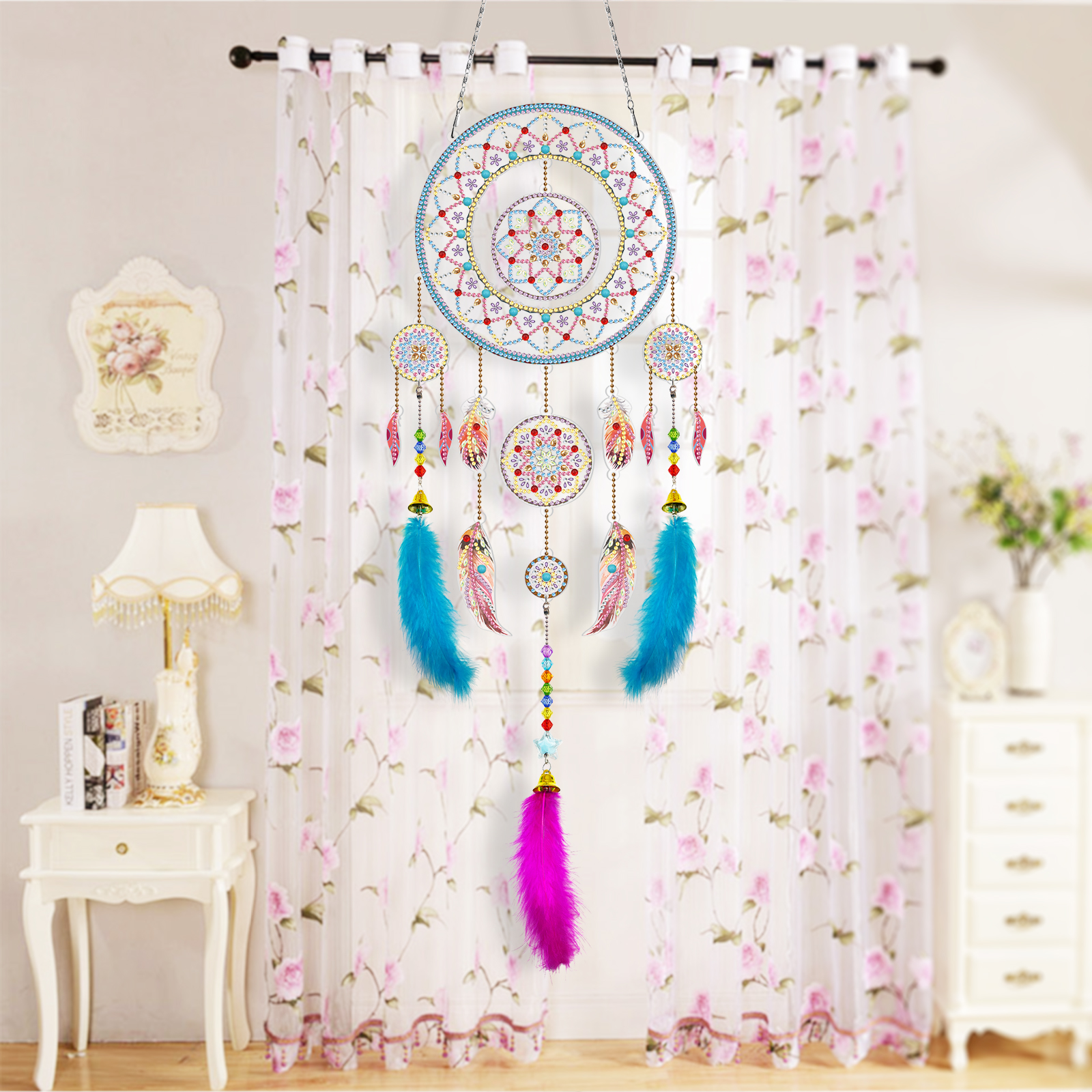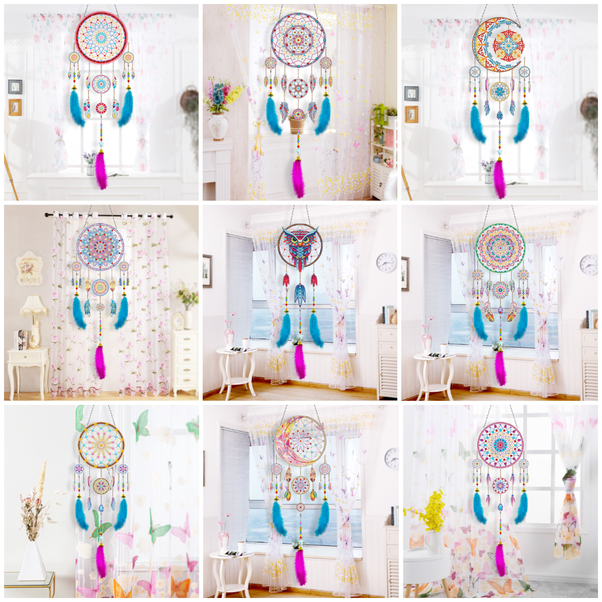 DIY Diamond Painting Dream Catcher Wind Chimes Kit Mosaic Feather Bead Chain HANGing Home Garden Decorations