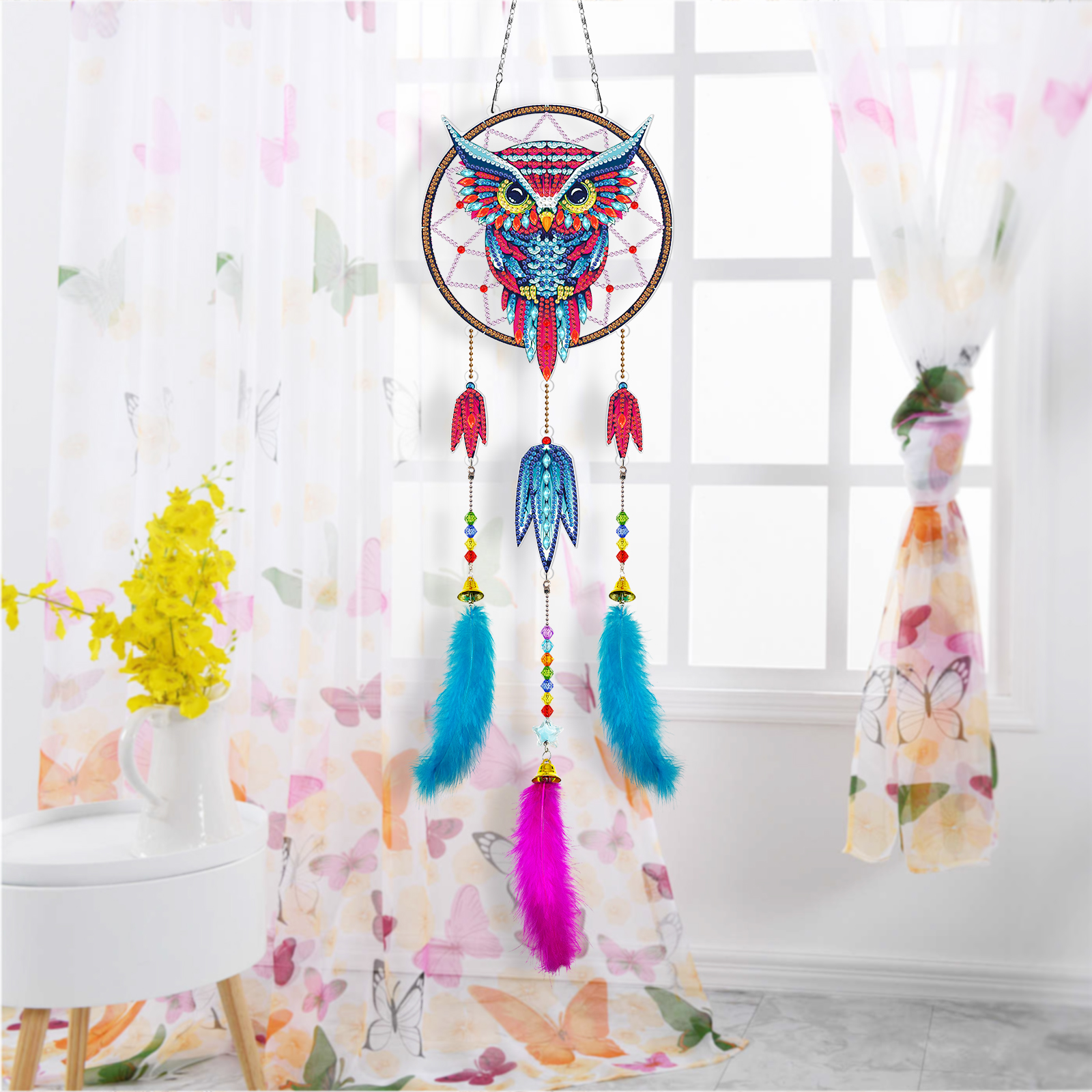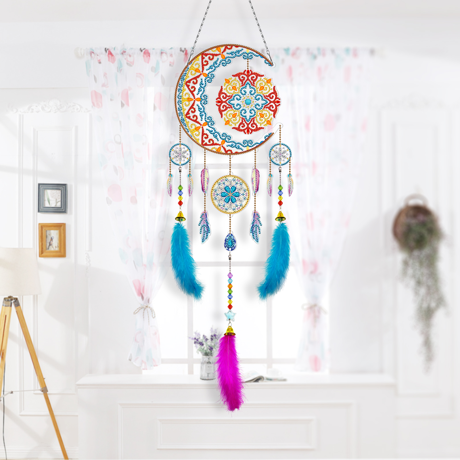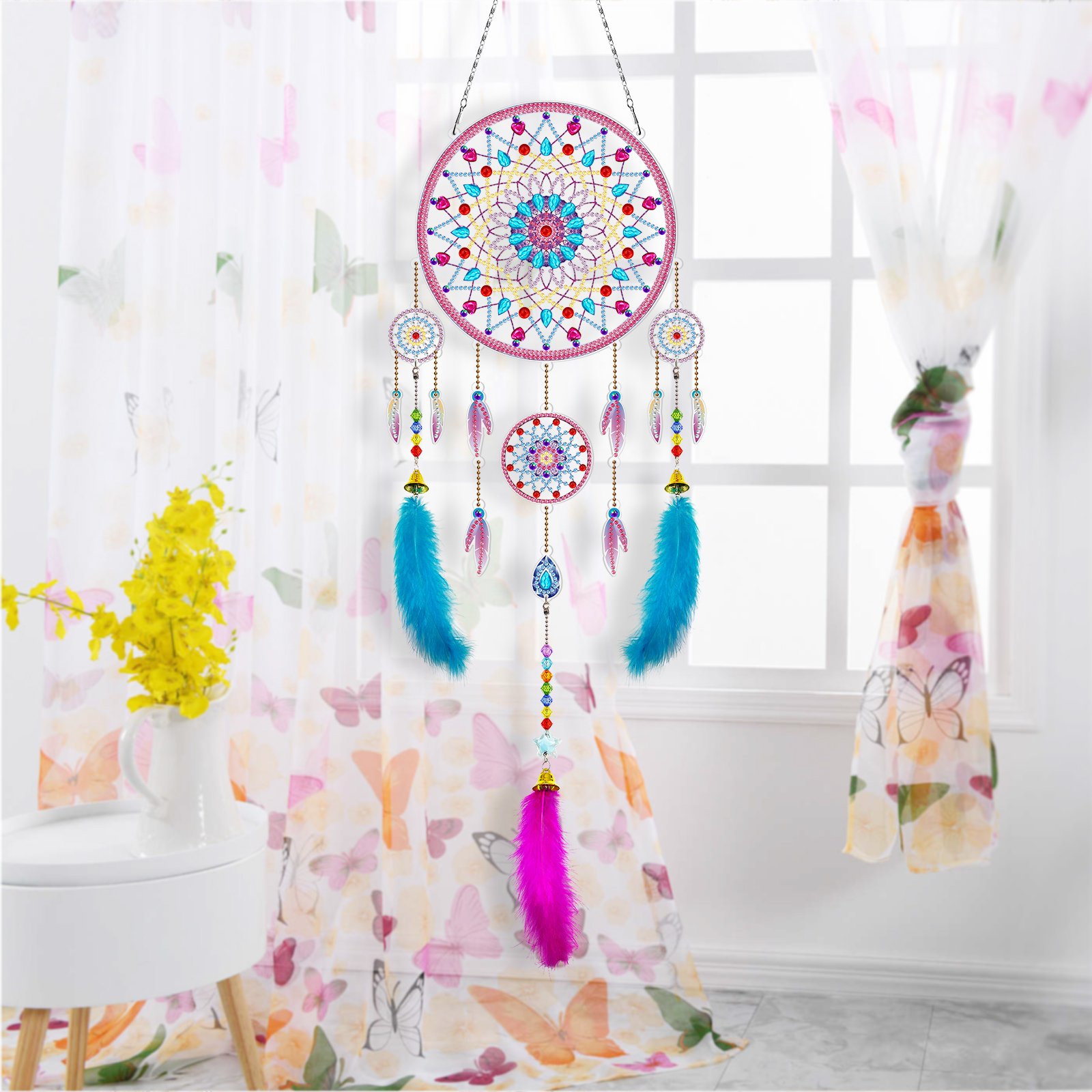 DIY Diamond Painting Dream Catcher Wind Chimes Kit Mosaic Feather Bead Chain HANGing Home Garden Decorations