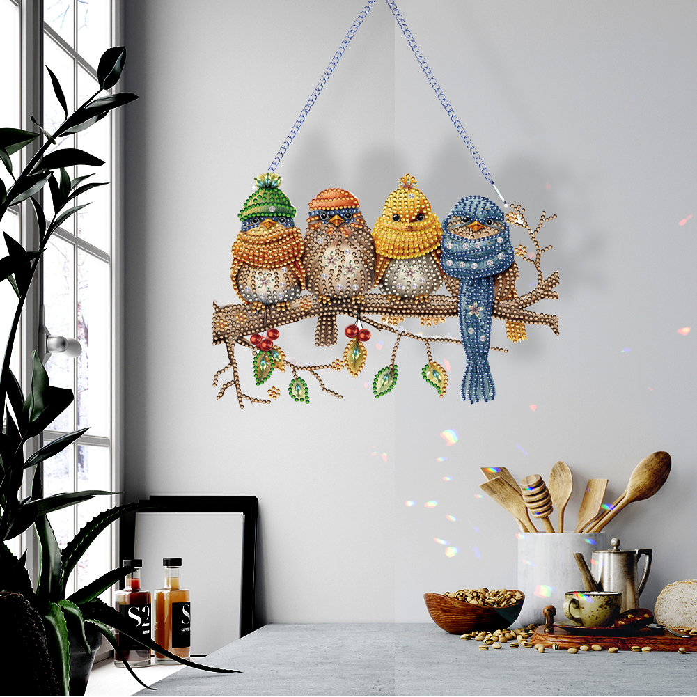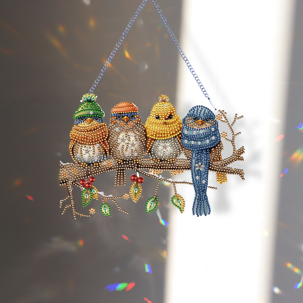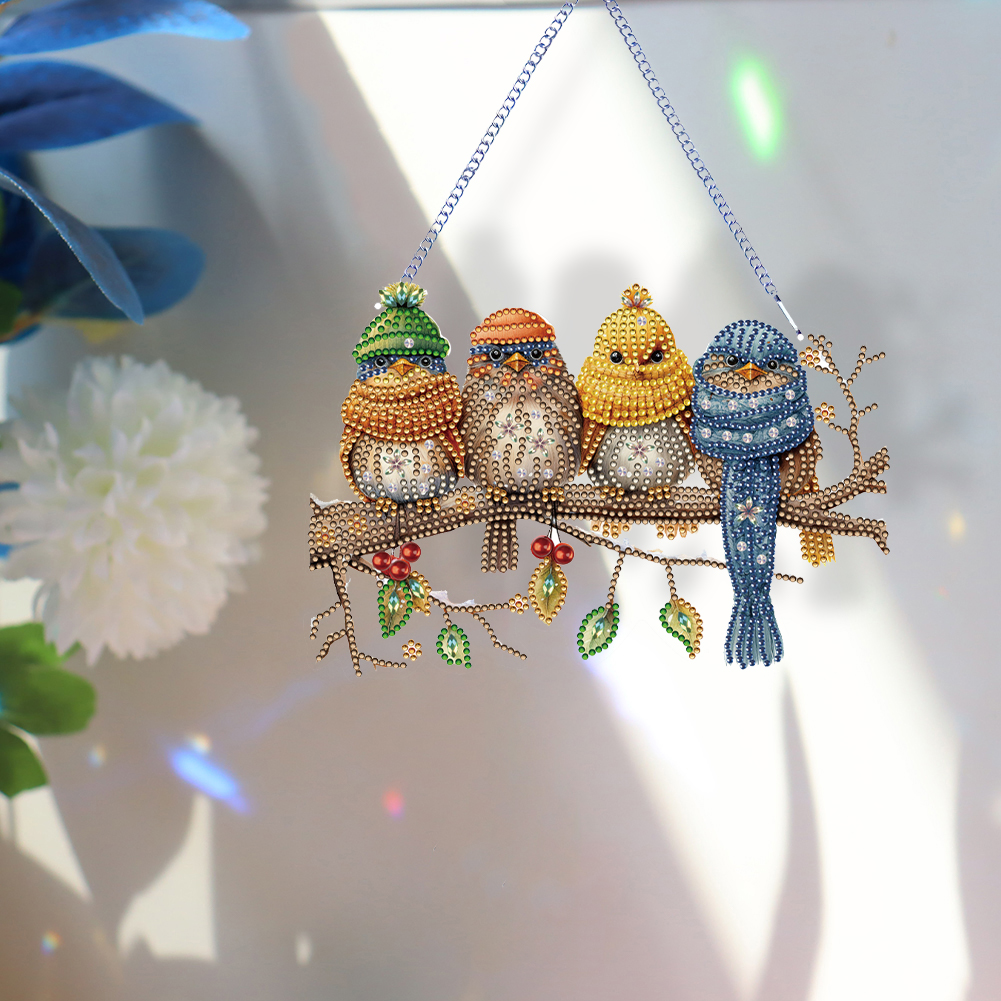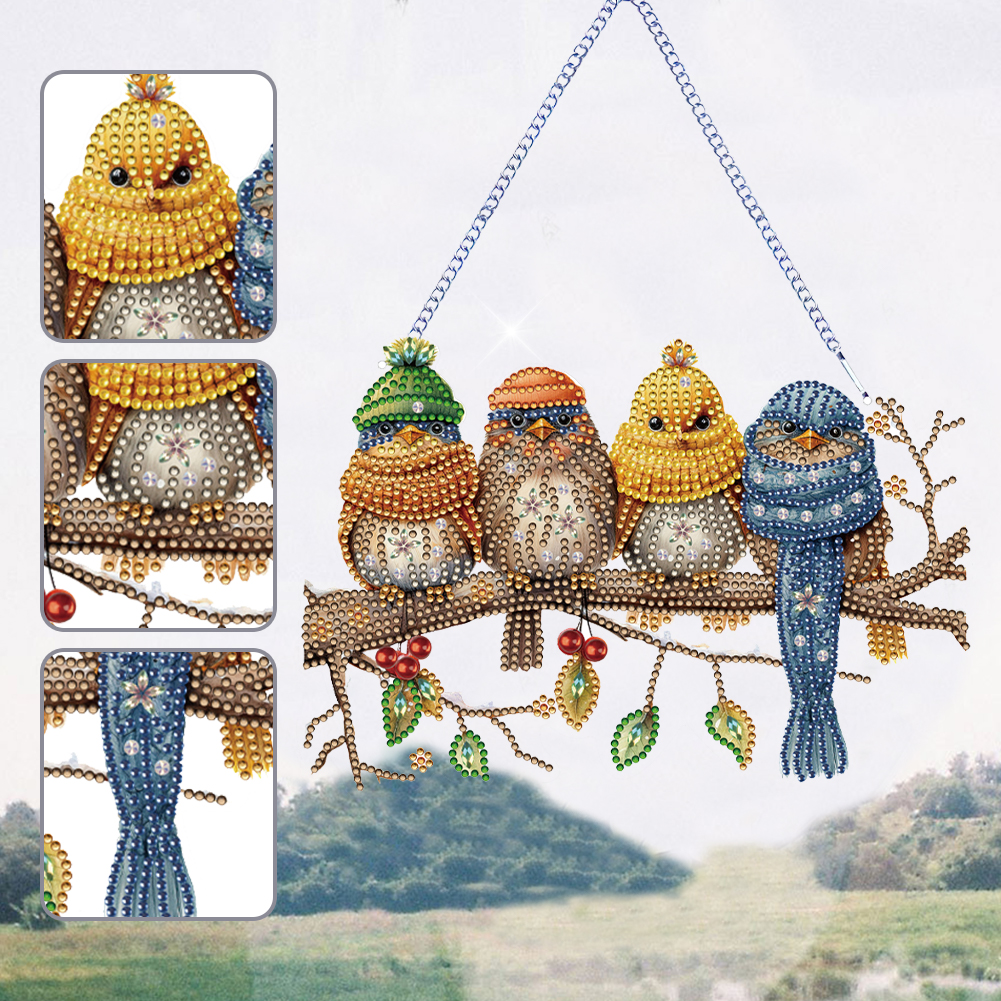 DIY Birds on Branch Acrylic Single-Sided Diamond Painting Hanging Pendant