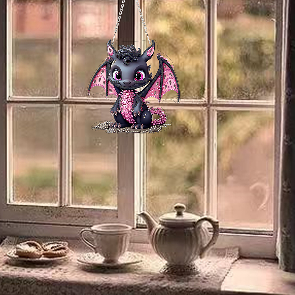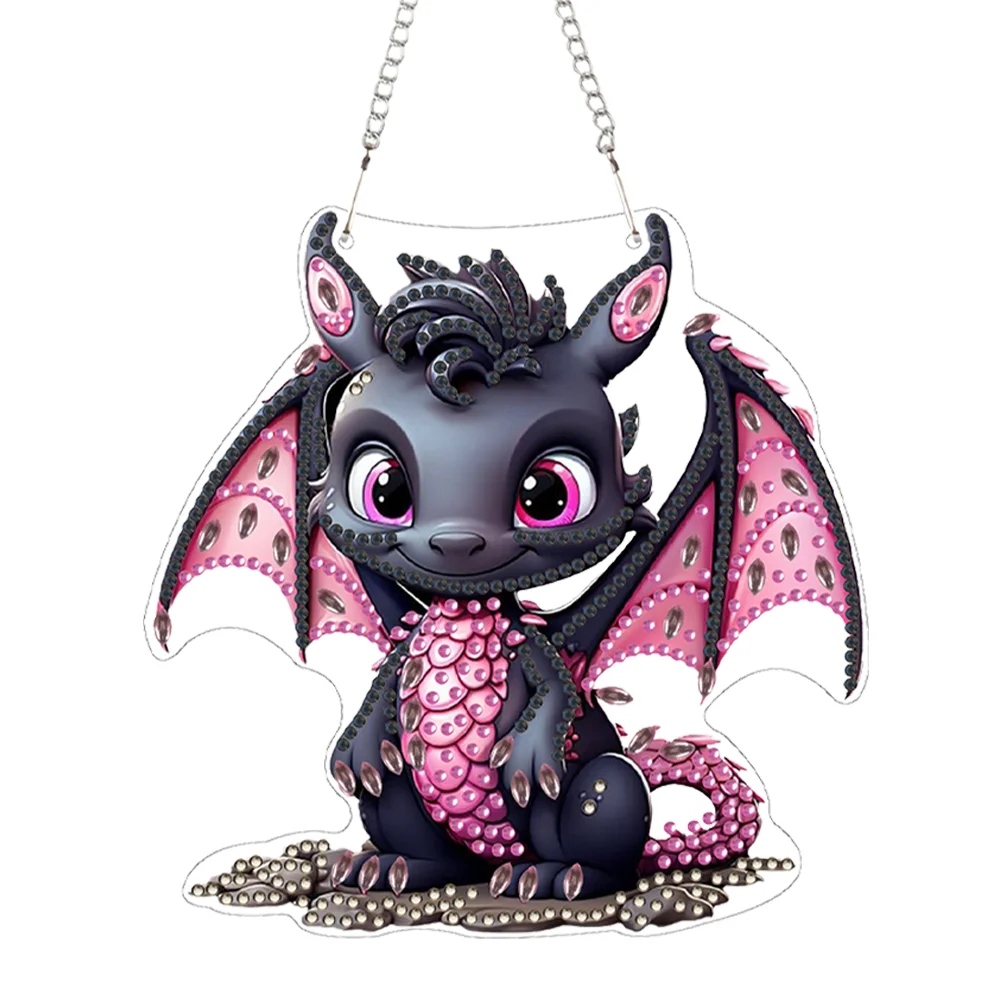 DIY Black Dragon Acrylic Special Shape 5D DIY Diamond Painting Dots Pendant for Home Decor(15*15cm)