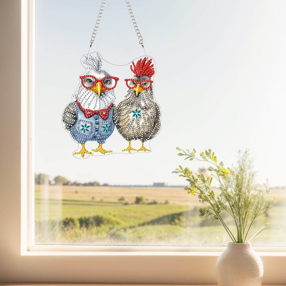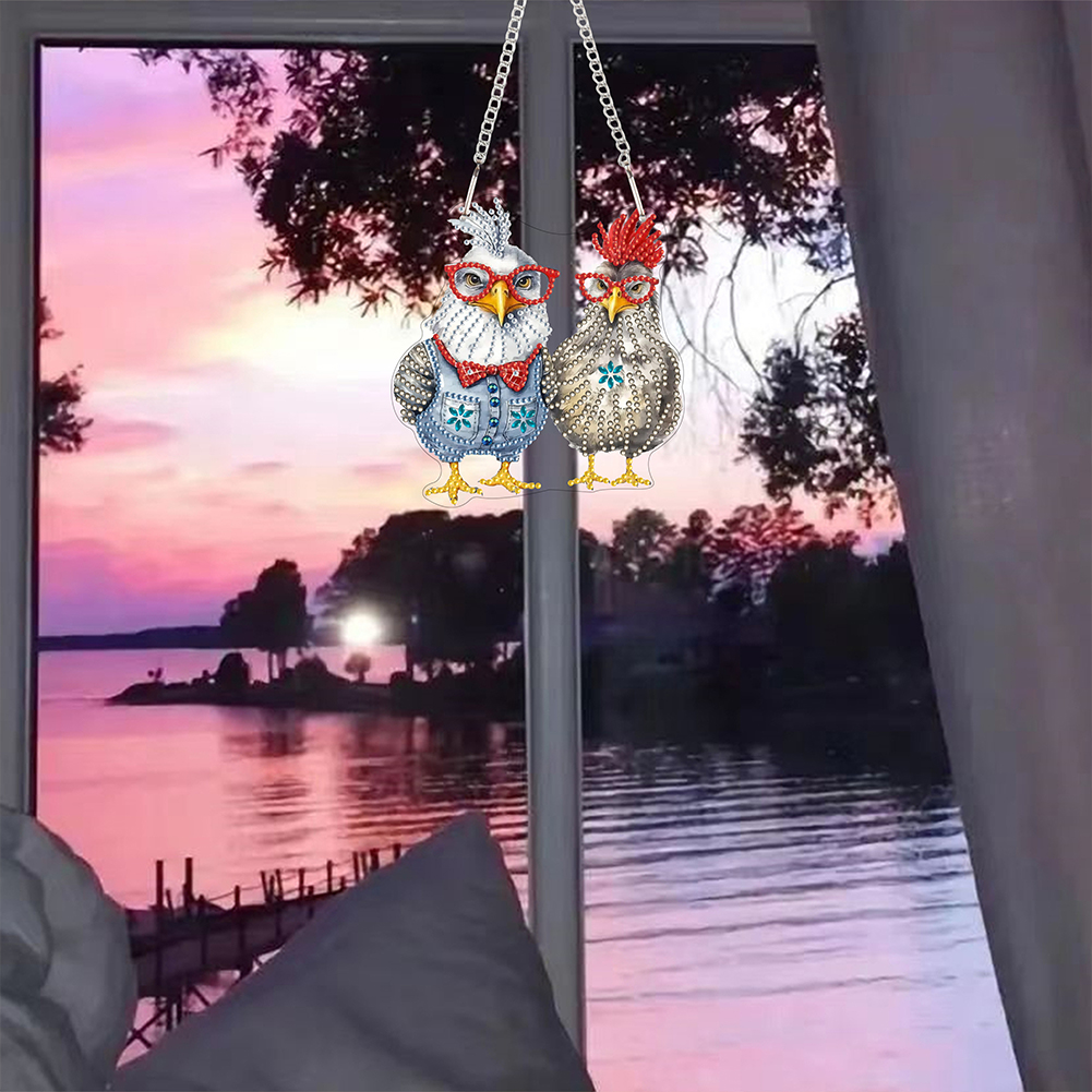 DIY Chicken Acrylic Special Shape 5D DIY Diamond Painting Dots Pendant for Home Decor(15*15cm)