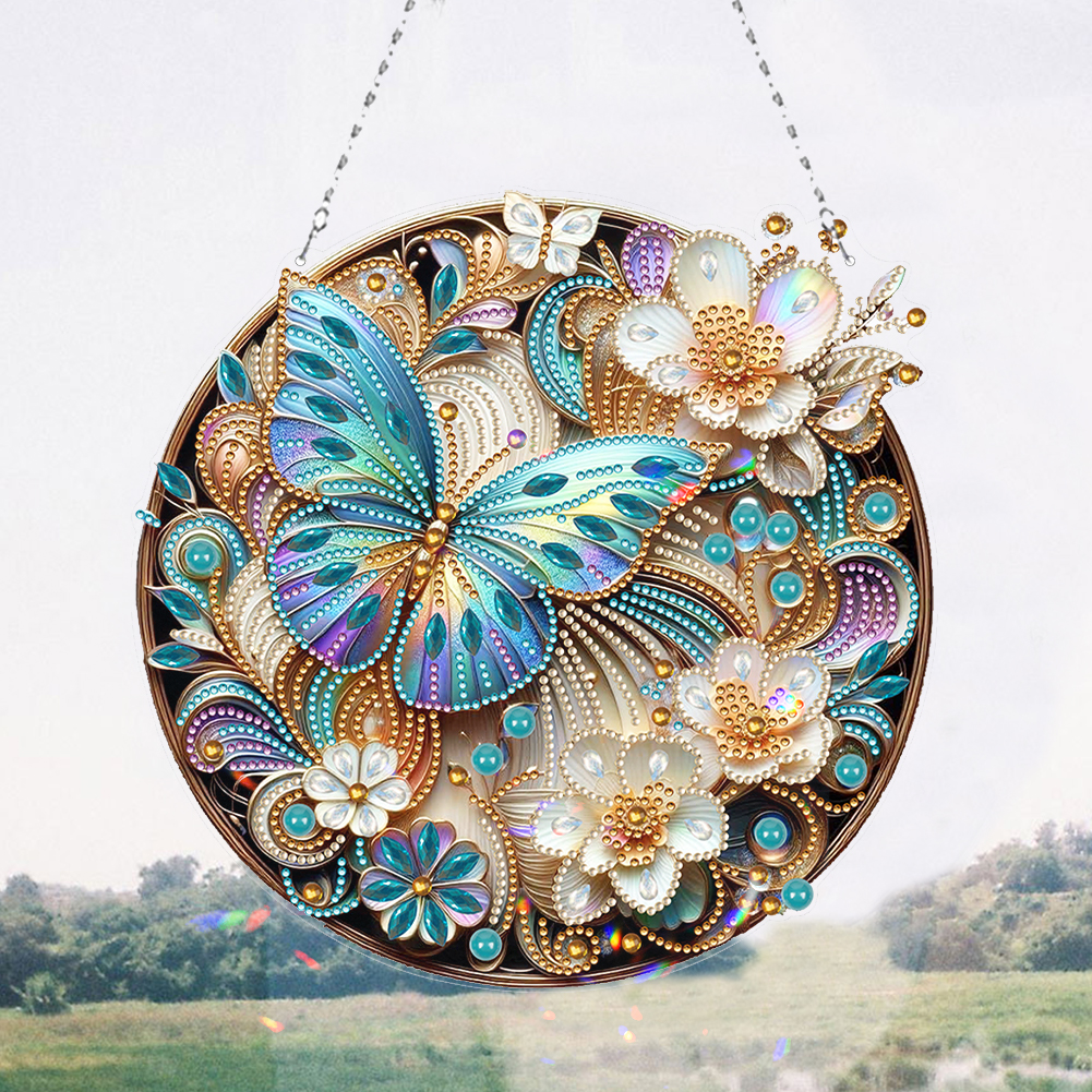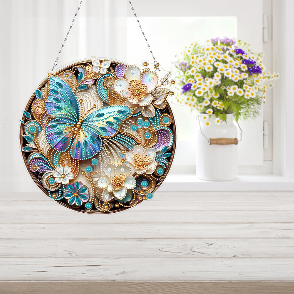 DIY Flower Butterfly Acrylic Special Shape Diamond Art Pendant for Wall Window Art Crafts