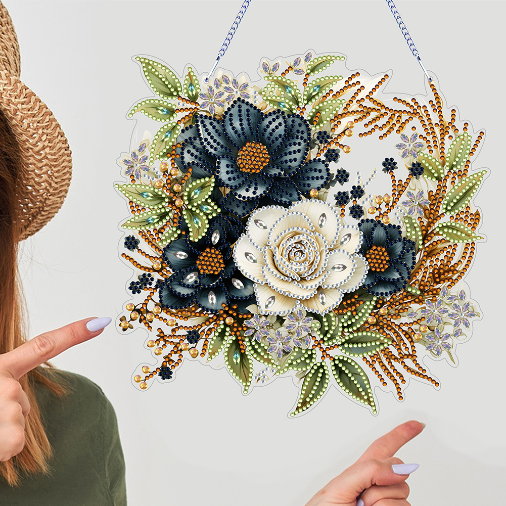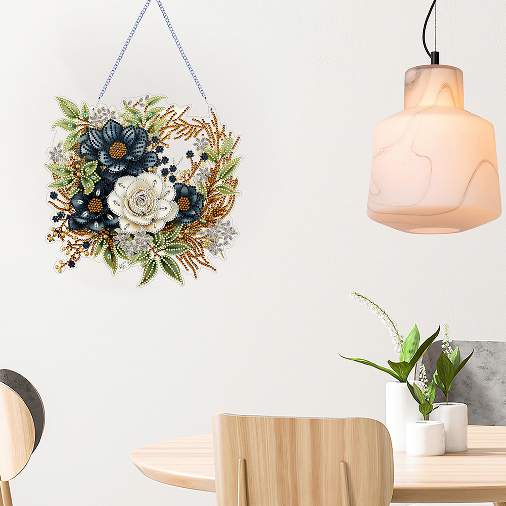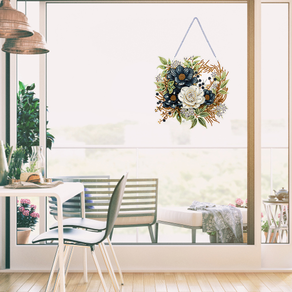 DIY Flower Acrylic Special Shaped+Round Diamond Painting Wreath Ornament for Xmas Wall Decor
