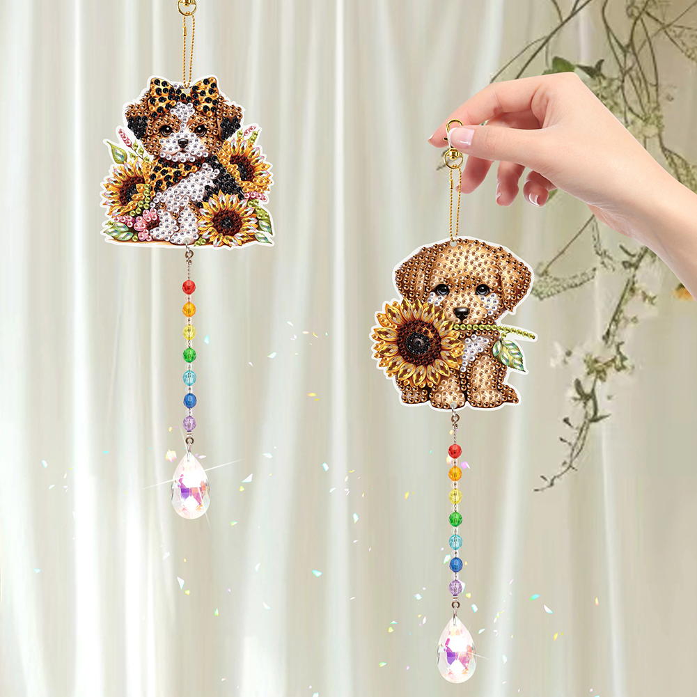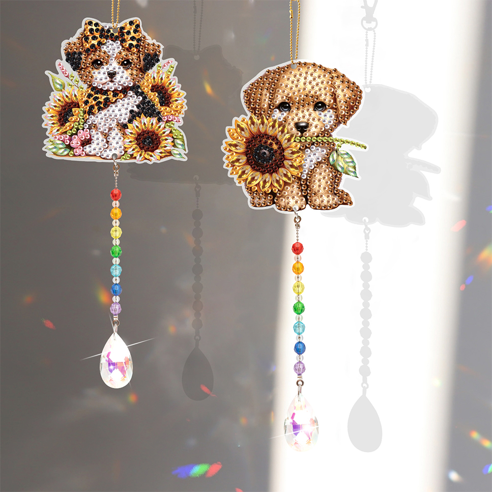 2Pcs 5D DIY Diamond Painting Sun Catcher Crystal Painting Ornaments (Puppy)