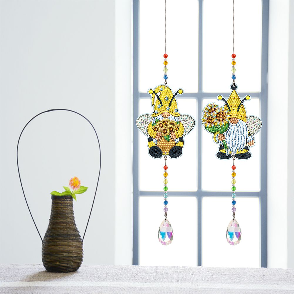 2pcs Crystal Light Catcher Diamond Painting Sunflower Gnome Hanging(Double-Sided)