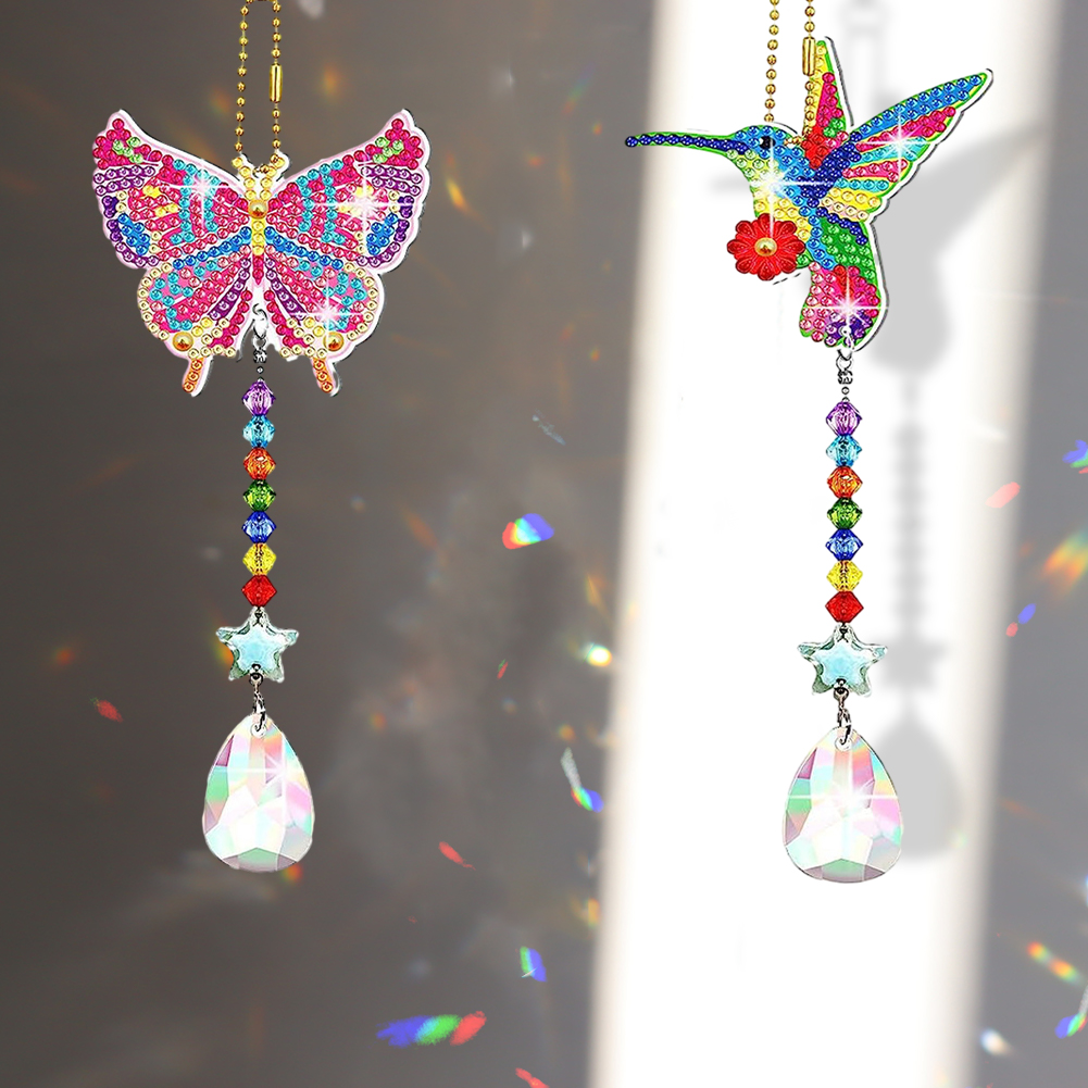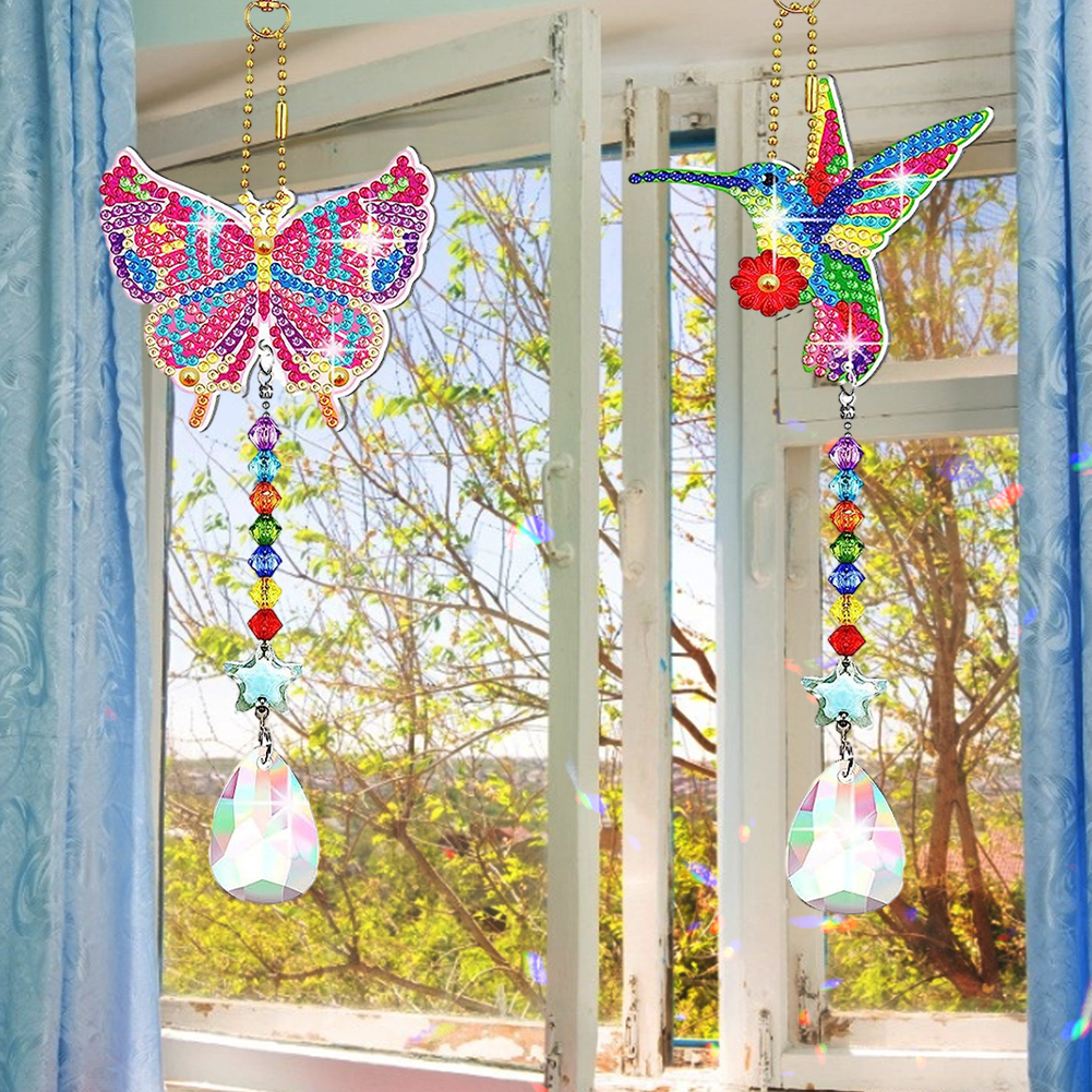 2pcs DIY Butterfly Hummingbird Suncatcher Diamond Drawing Hanging Ornament Kit