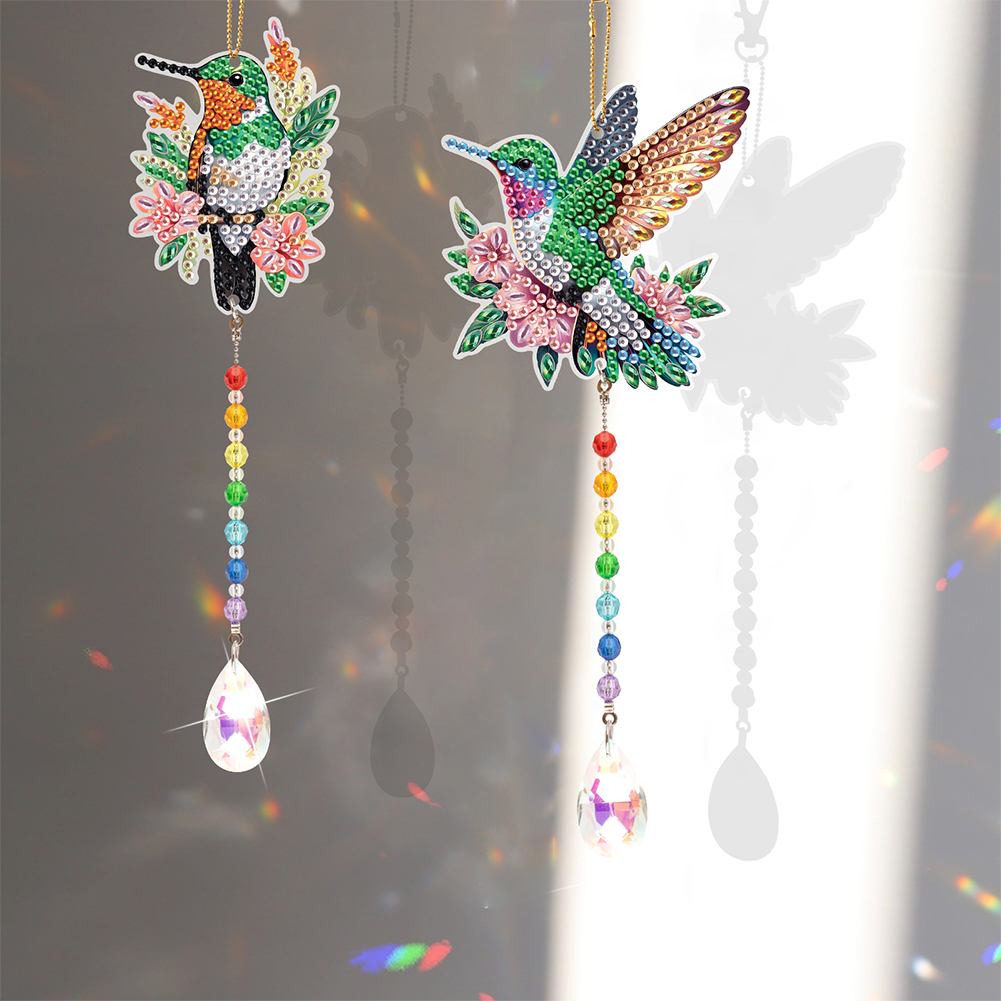 2Pcs DIY Diamond Painting Sun Catcher Crystal Painting Ornaments (Hummingbird)