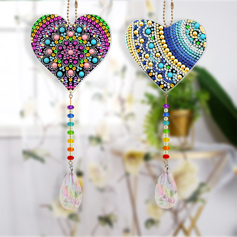 2pcs DIY Diamond Painting Sun Catcher Pendant - Heart
