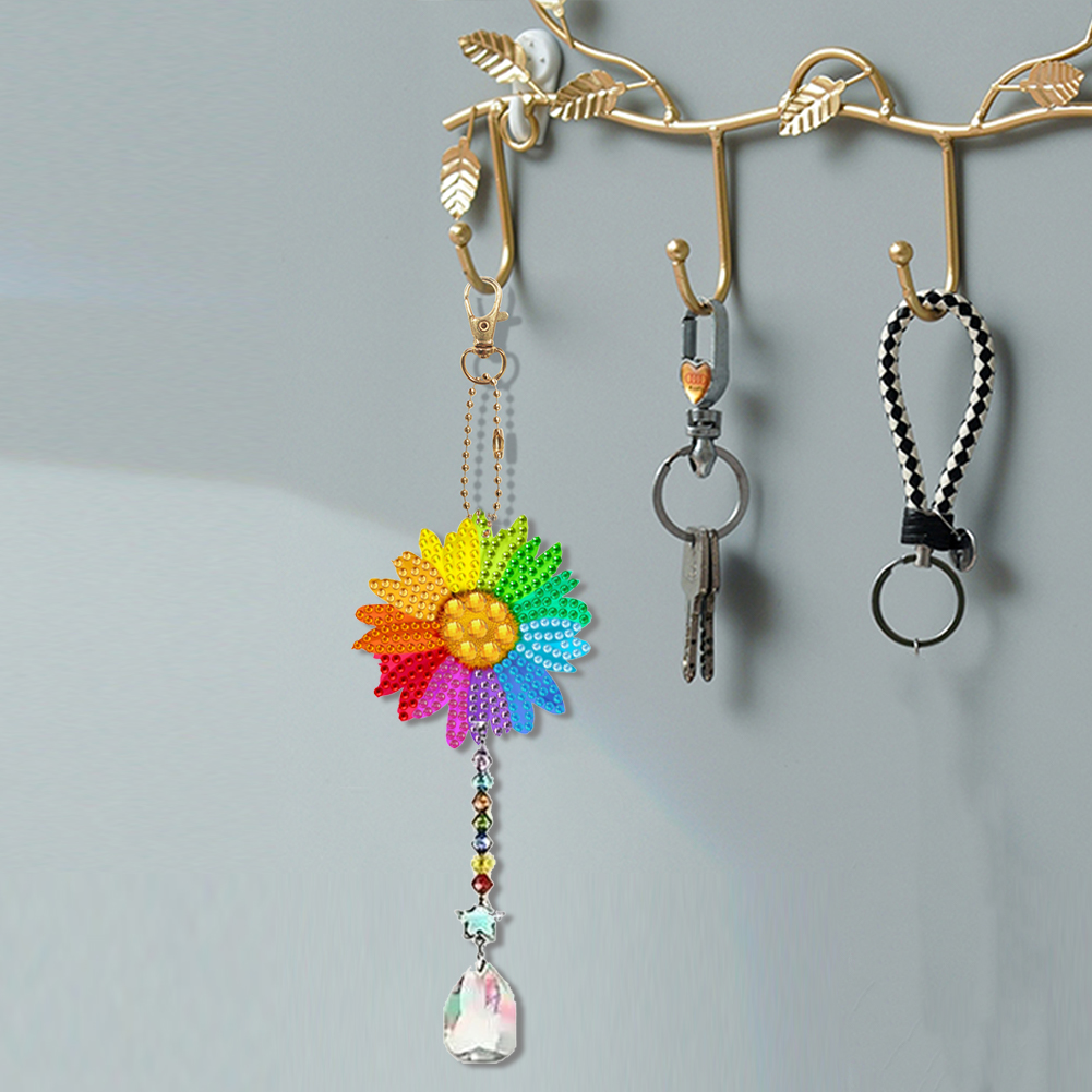 5Pcs Acrylic Double Sided Sunflower Suncatcher Diamond Painting Hanging Pendant Diamond Drawing Hanging Ornament