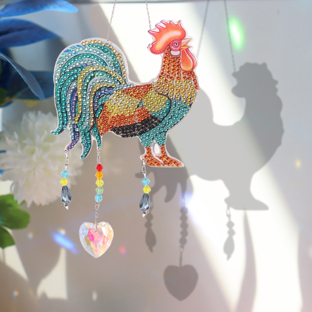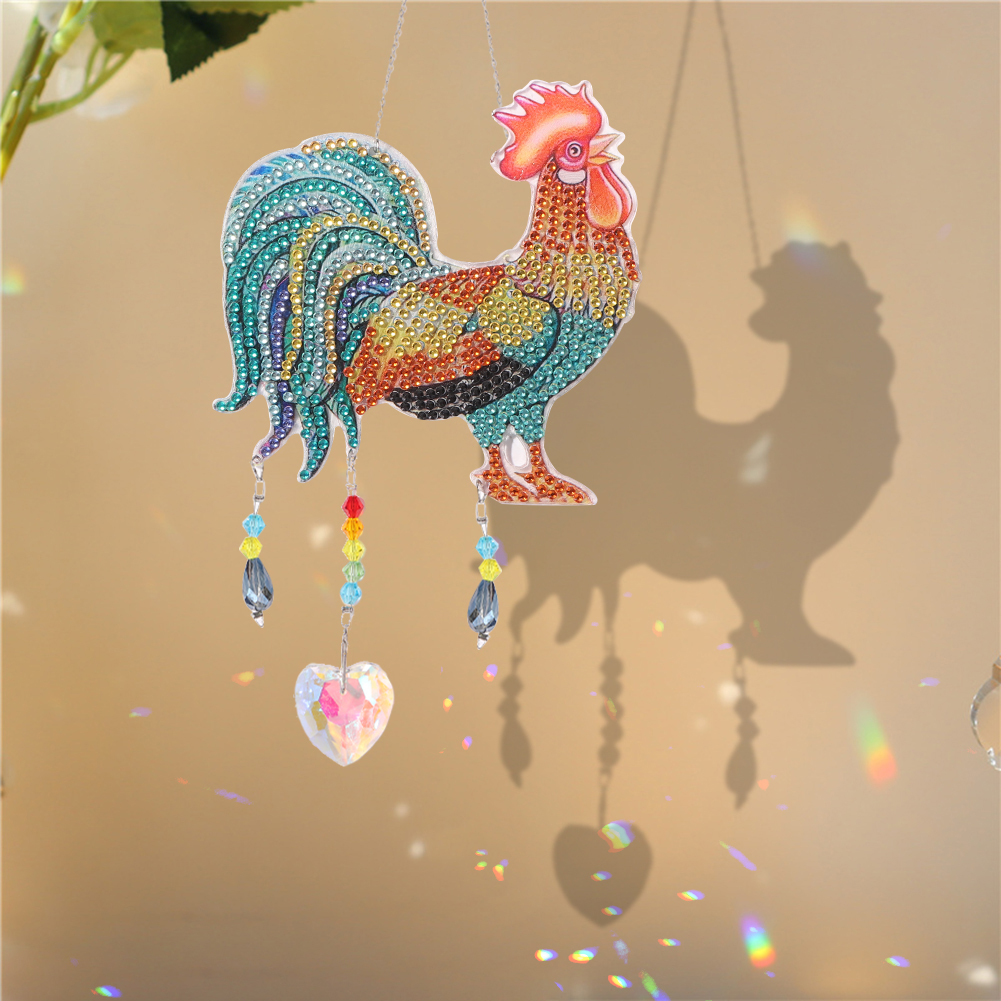 Crystal Diamond Painting Kits Prisms Hanging Peafowl Rooster Fish Rainbow Chaser Lighting Accessories for Window Curtains Pendant Home Garden Car Lamp Decor Gifts