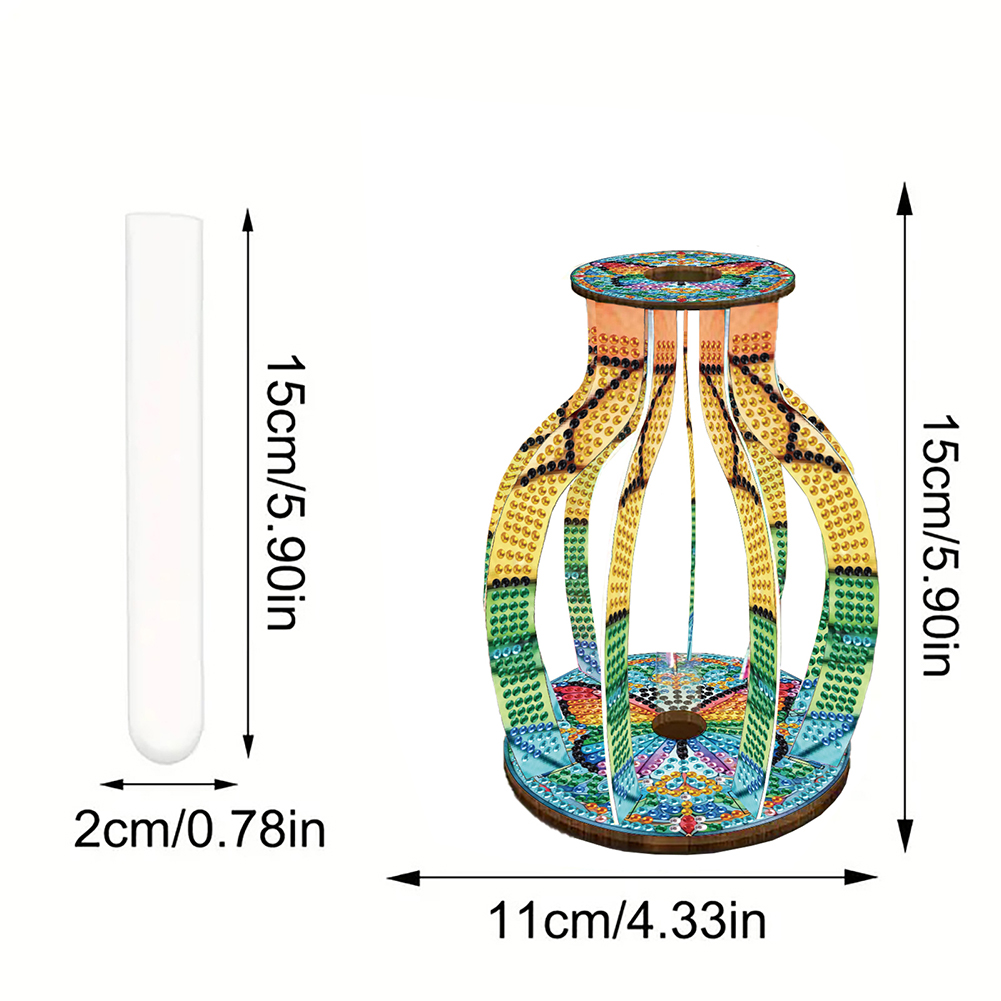 Acrylic Wood Colorful Pattern Diamond Mosaic Rhinestones Vase Diamond Painting Tabletop Vase Ornaments Kit for Home Office Decor