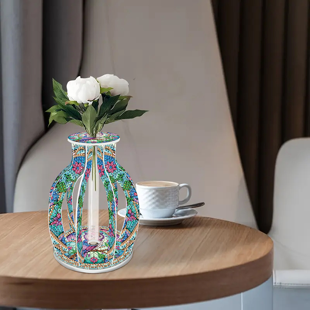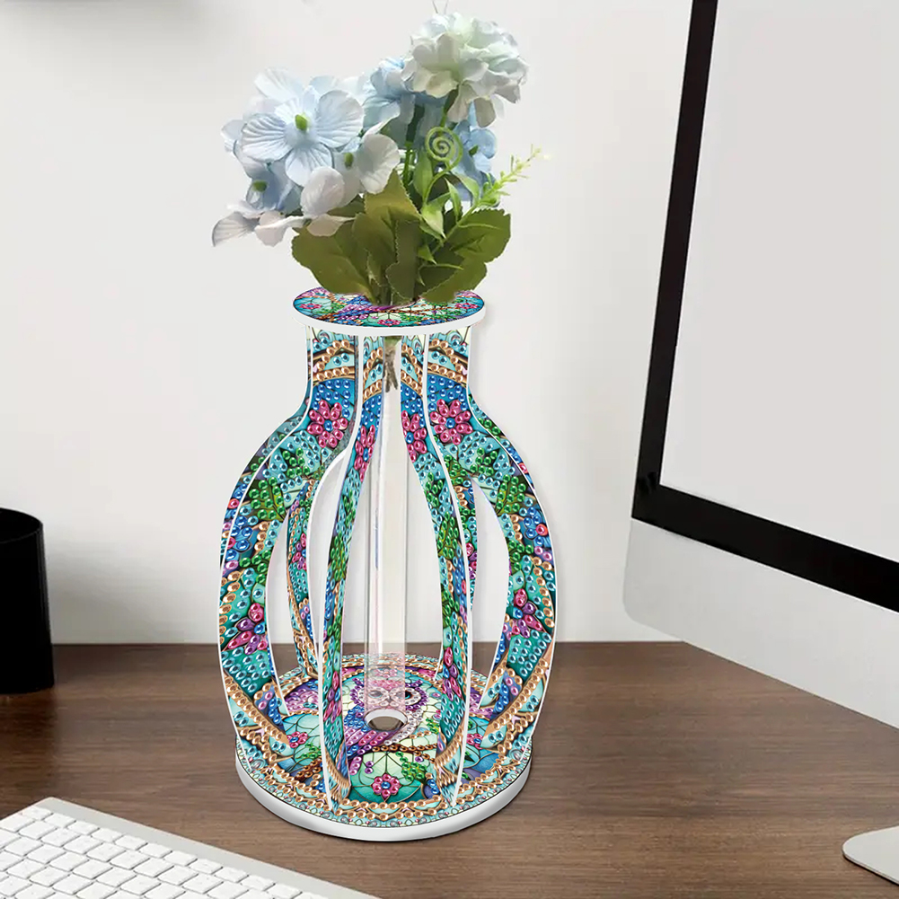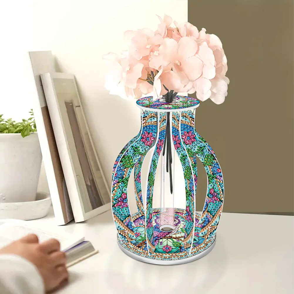 Acrylic Wood Beautiful Pattern Diamond Painting Tabletop Vase Ornaments Kit Diamond Painting 3D Vase Decor for Home Office Decor