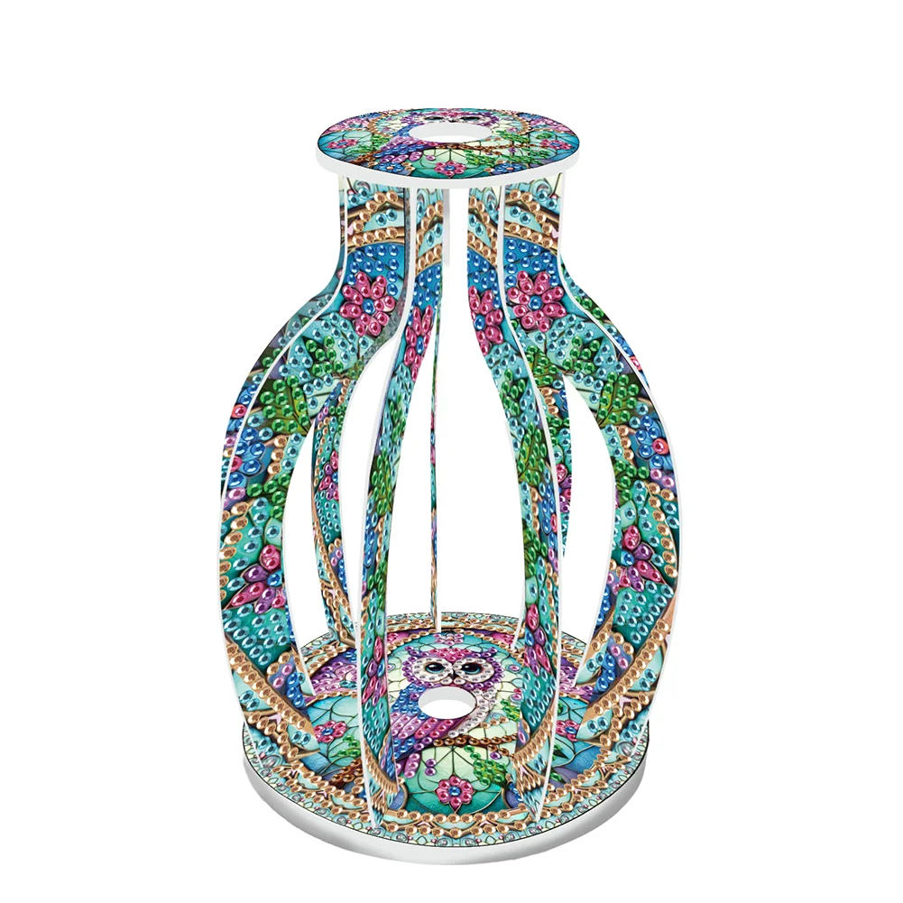 Acrylic Wood Owl 5D DIY Diamond Painting Flower Vase for Home Office Decoration