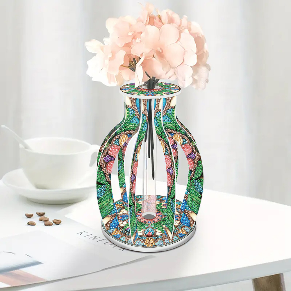 Acrylic Wood Beautiful Pattern Diamond Painting Tabletop Vase Ornaments Kit Diamond Painting 3D Vase Decor for Home Office Decor