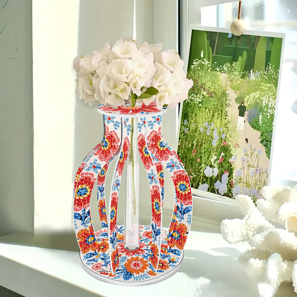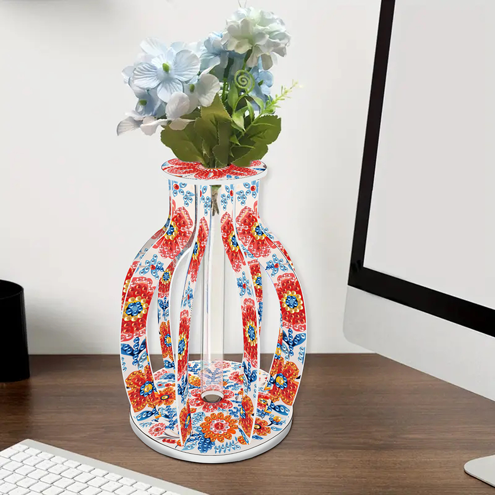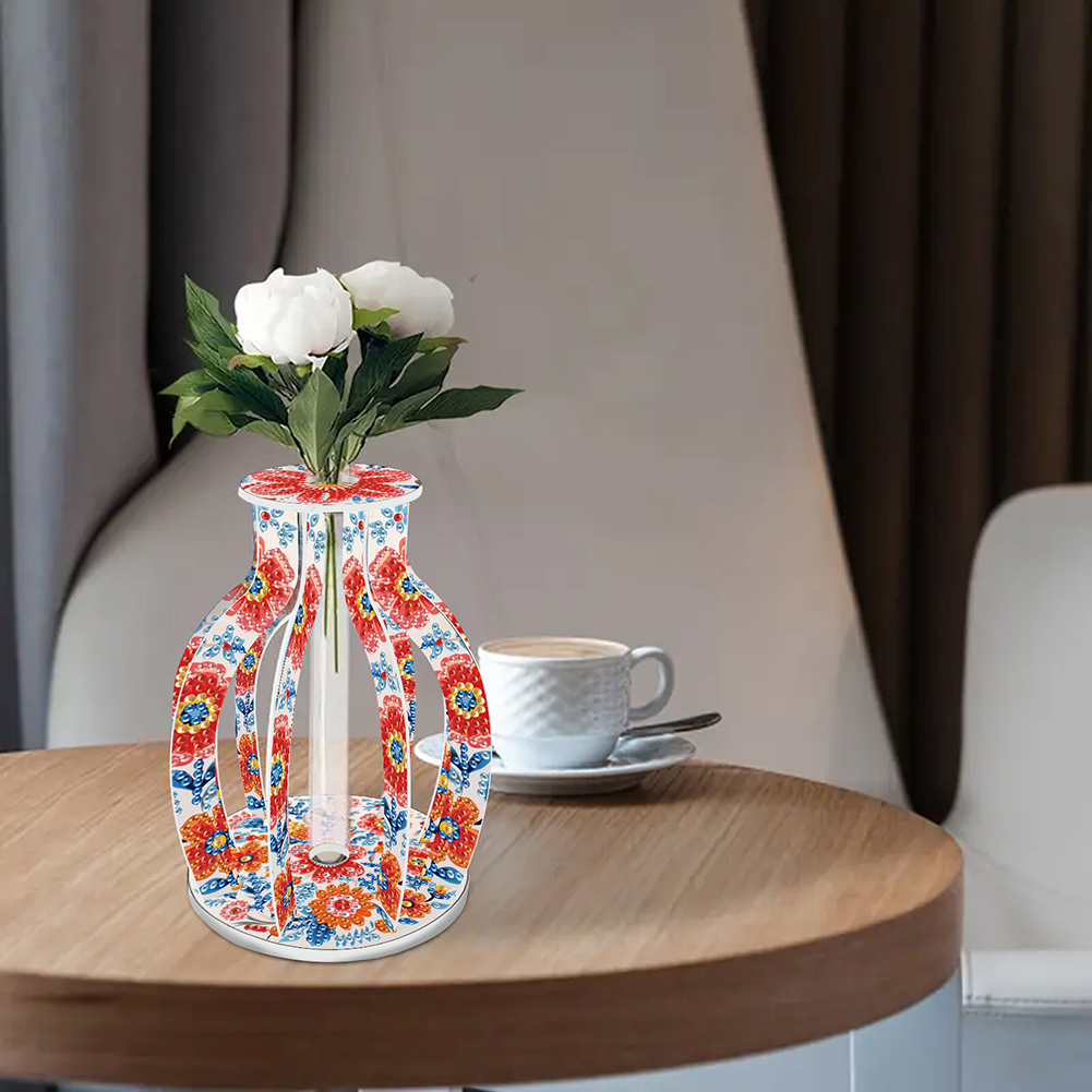 Acrylic Wood Beautiful Pattern Diamond Painting Tabletop Vase Ornaments Kit Diamond Painting 3D Vase Decor for Home Office Decor