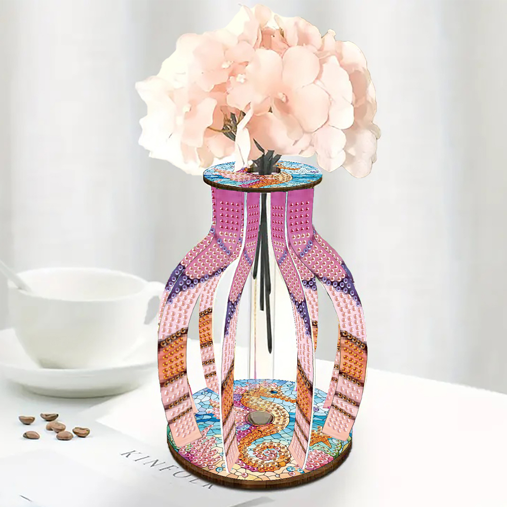 Acrylic Wood Seahorse 5D DIY Diamond Painting Flower Vase for Home Office Decor