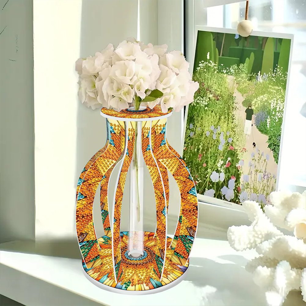 Acrylic Wood Sunflowers DIY Diamond Painting Flower Vase for Home Office Decor