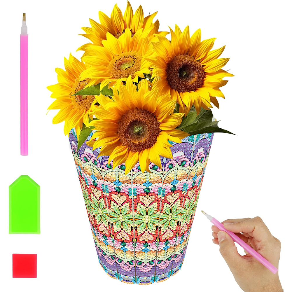 Desktop Diamond Art Flower Arrangement Vase for Home Office Decor (Flower)