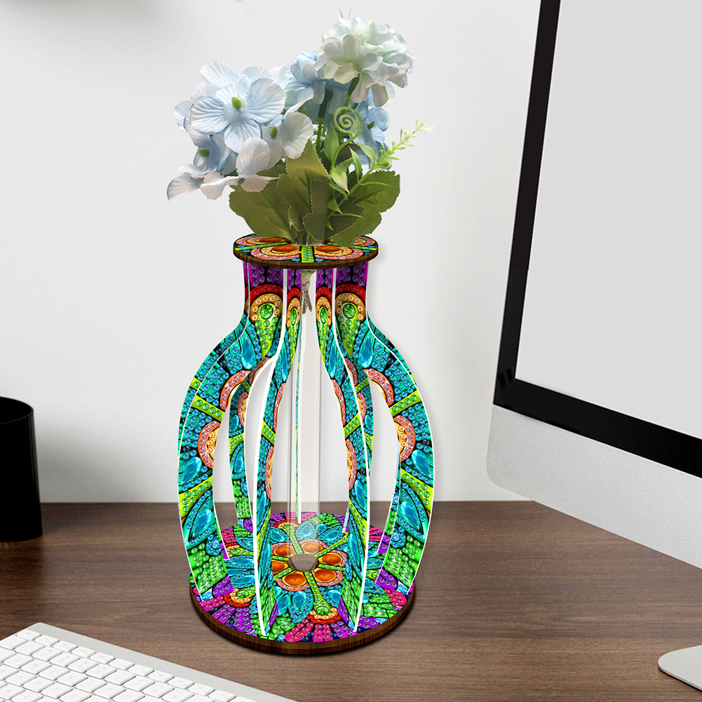 DIY Wood Mandala Diamond Painting Flower Vase Ornaments for Home Office Decor