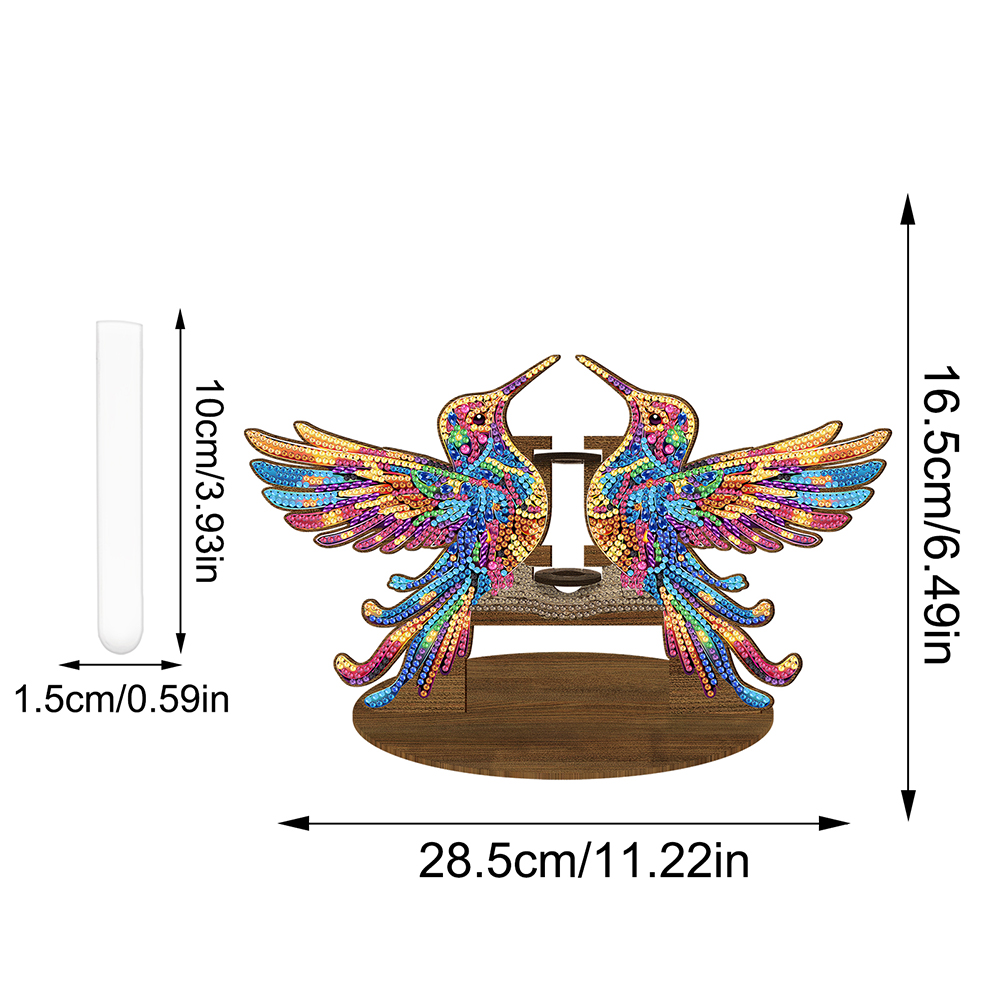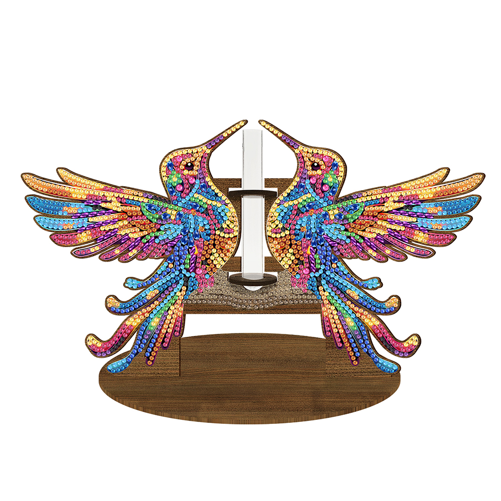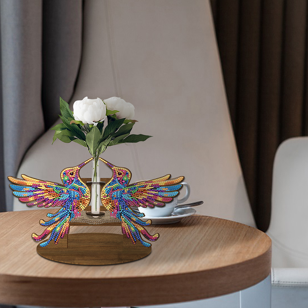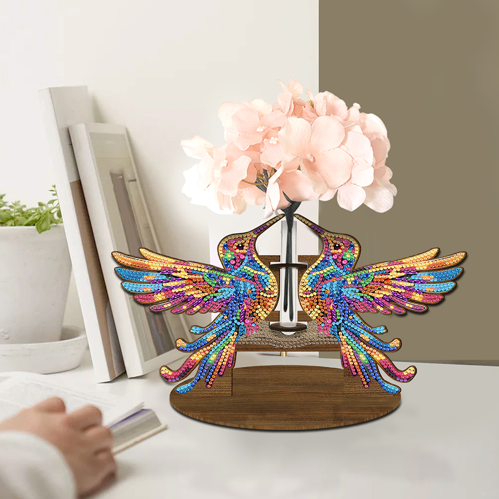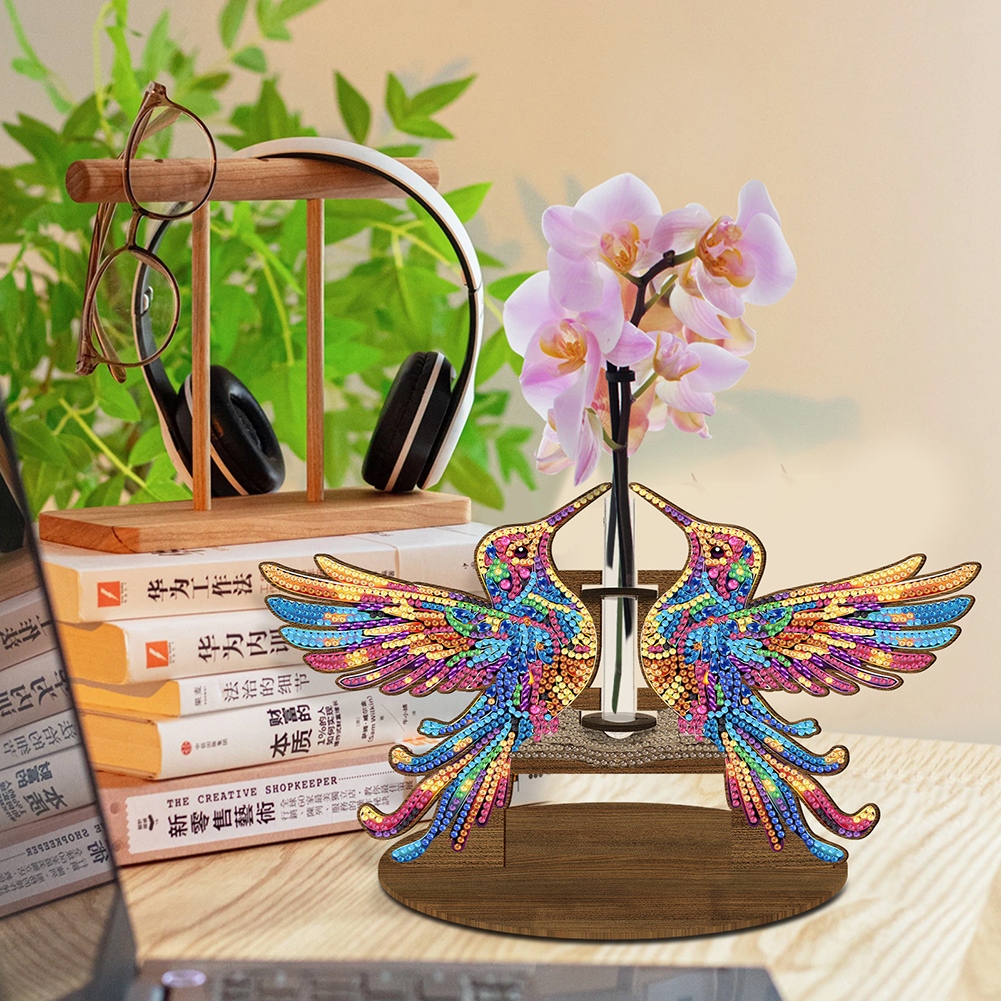 DIY Wooden Hummingbird Diamond Painting Flower Vase Ornaments for Home Office Decor