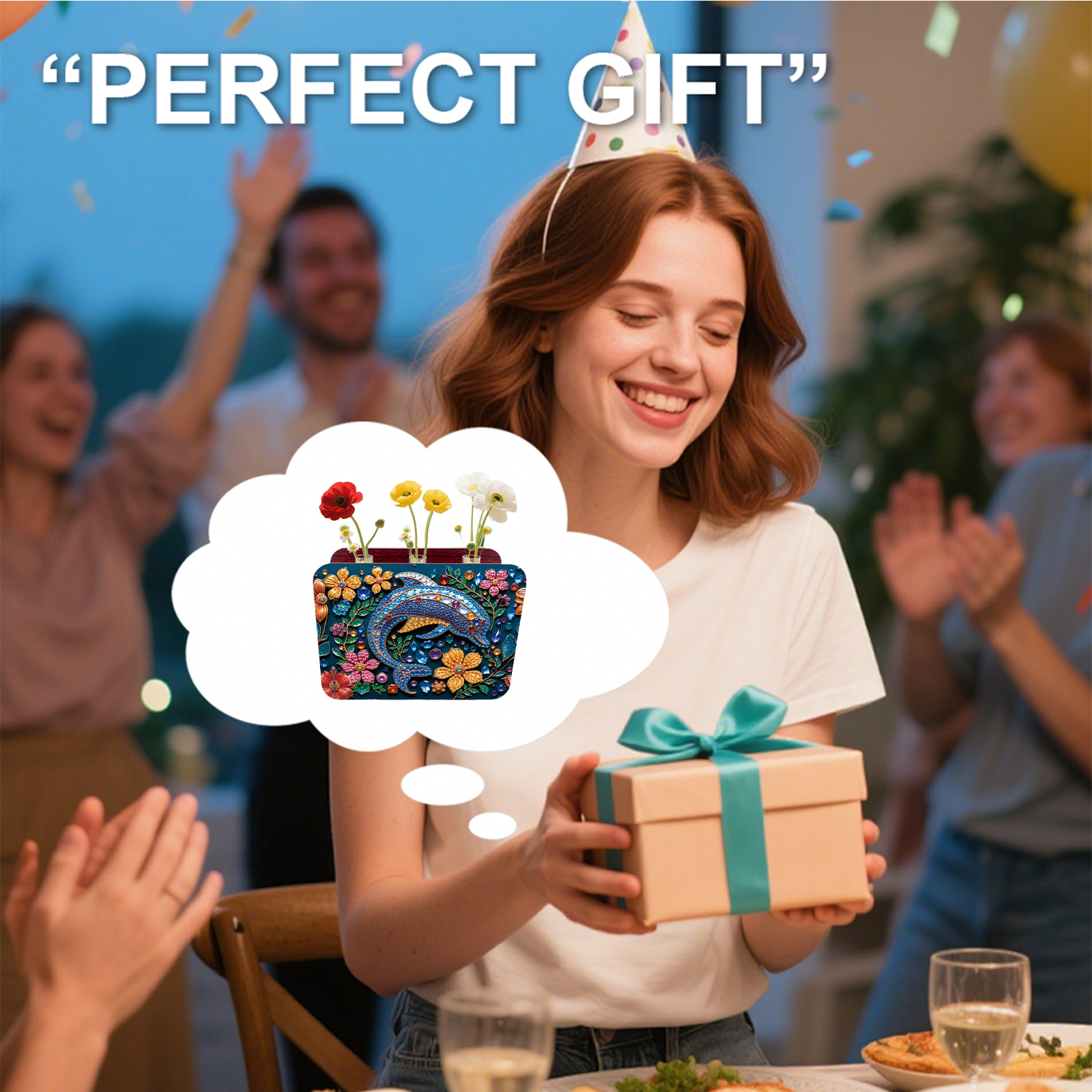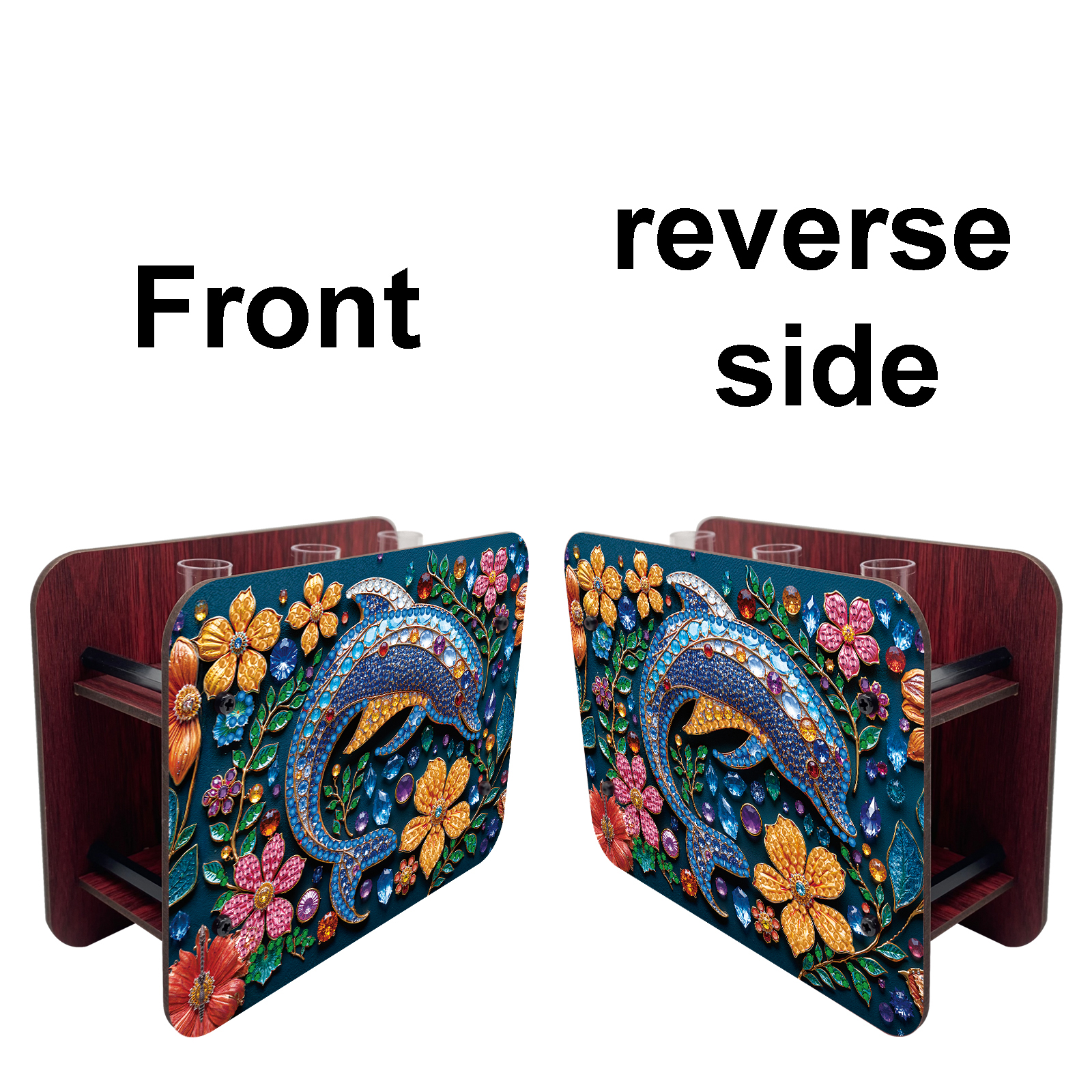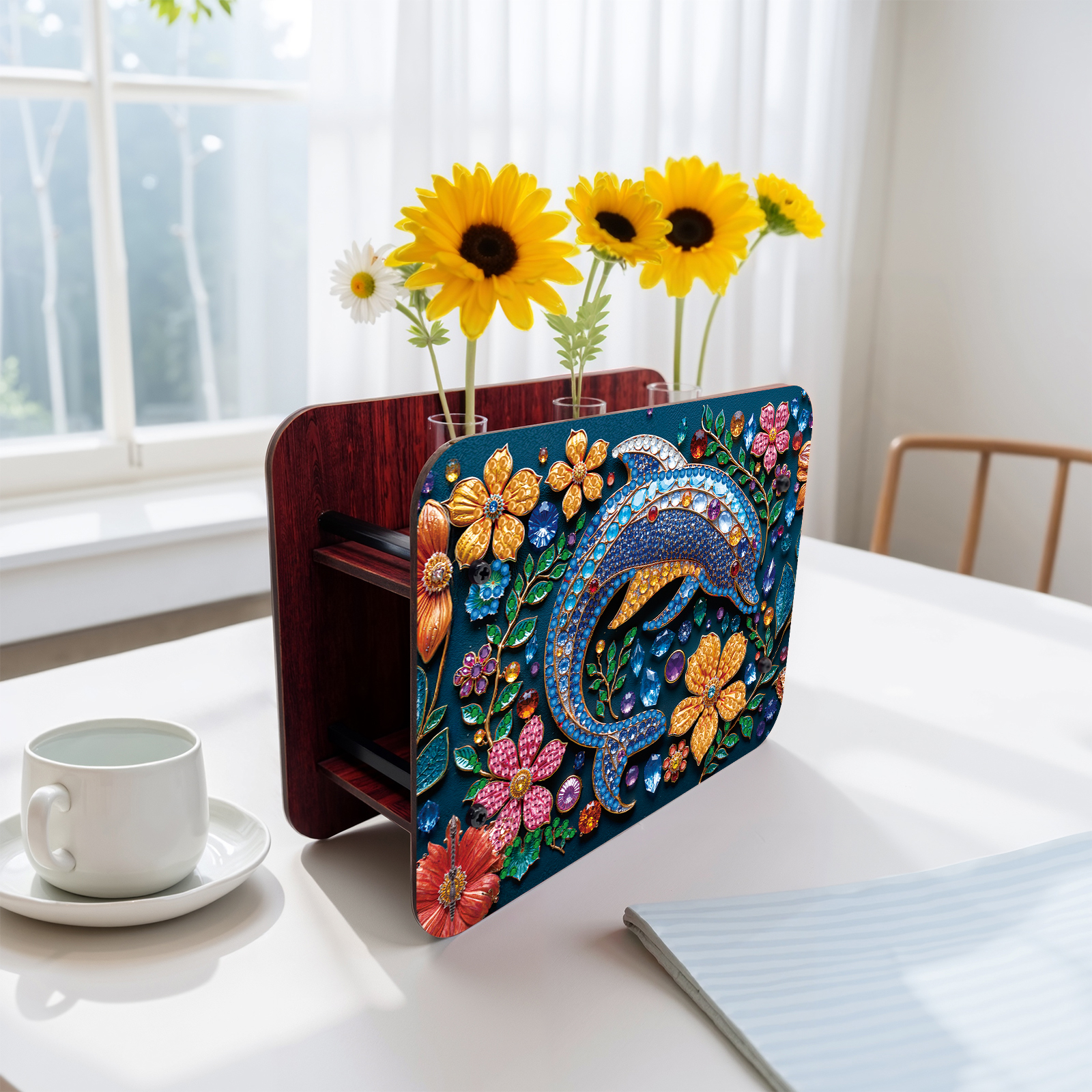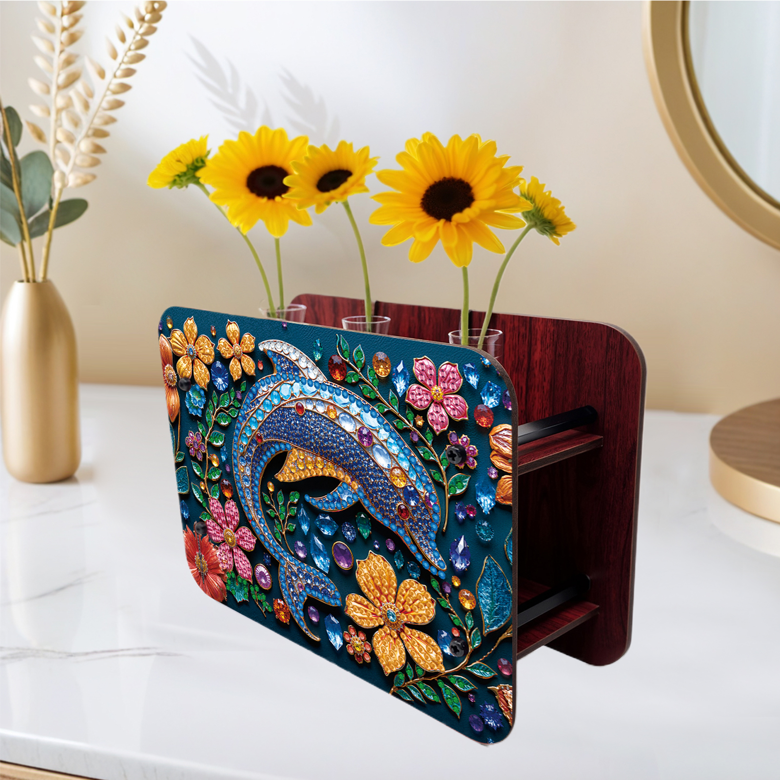 Dolphin DIY Flower Vase Wooden Double Sided Desktop Diamond Art Kit Home Decor