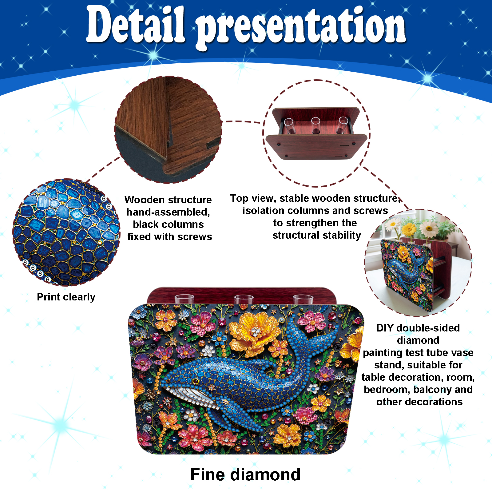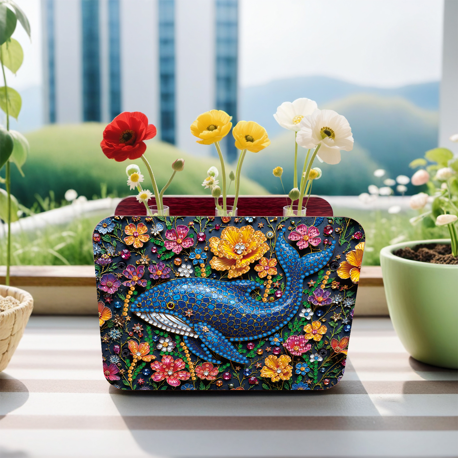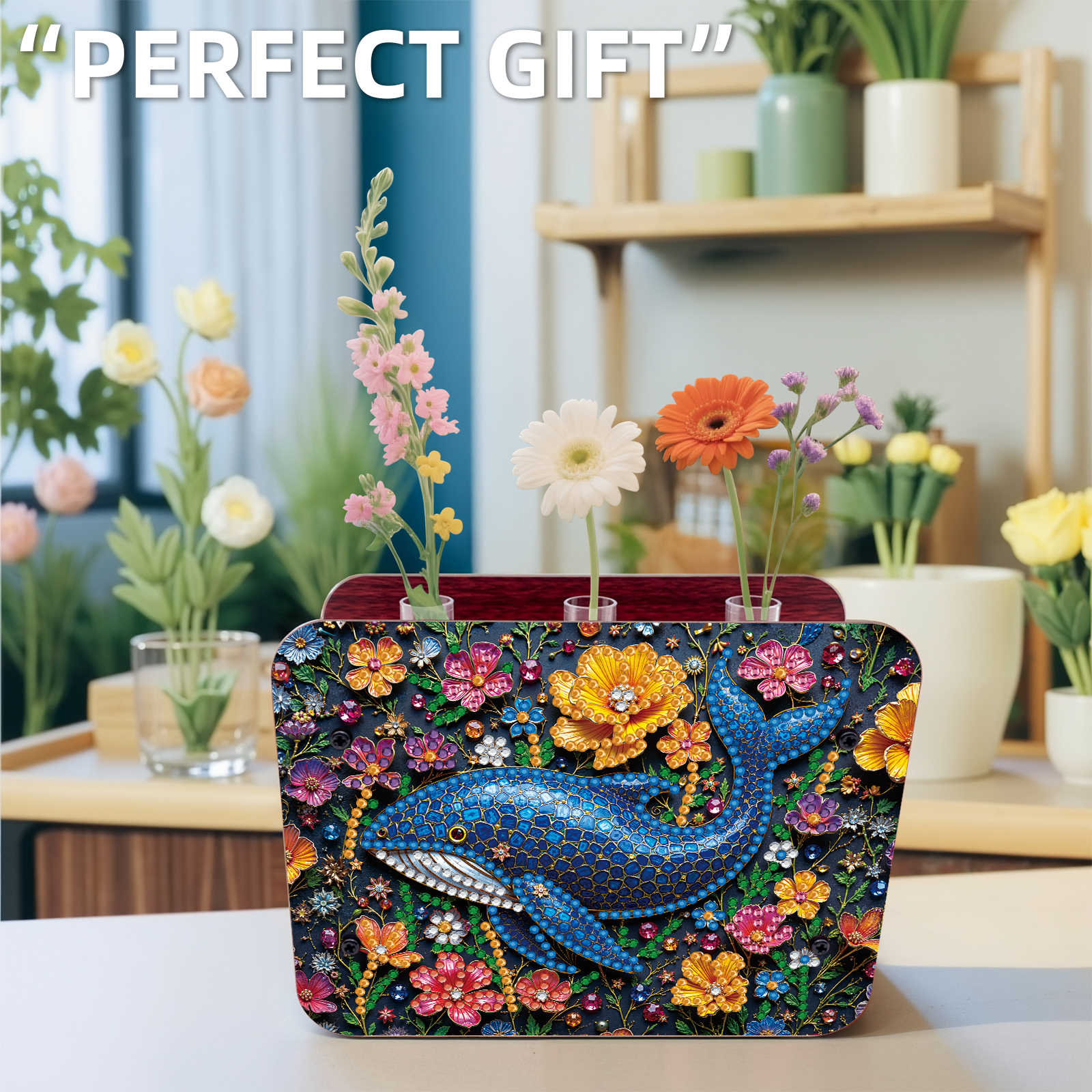 Gem Dolphin DIY Diamond Painting Wooden Tube Vase for Adults Gift Home Decor