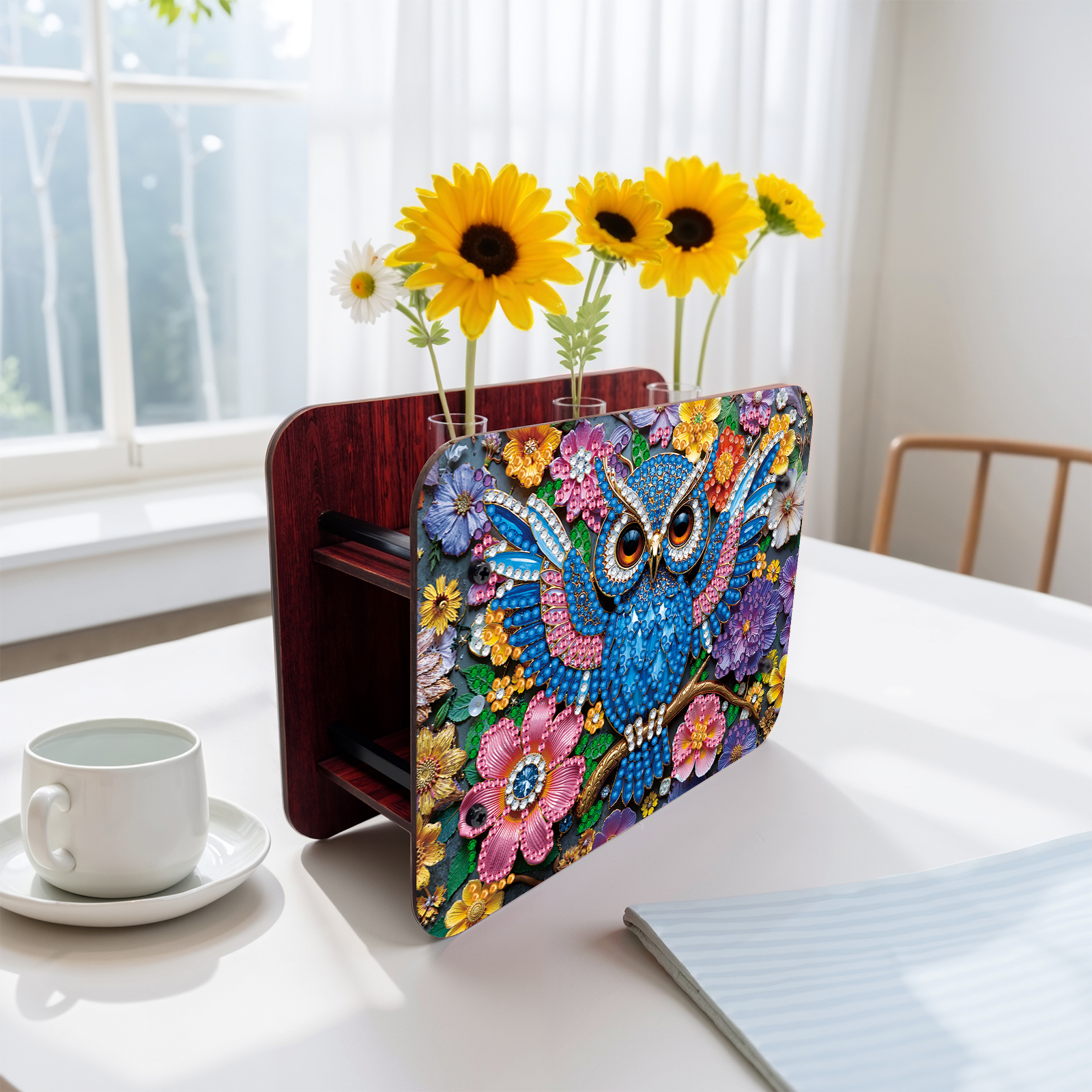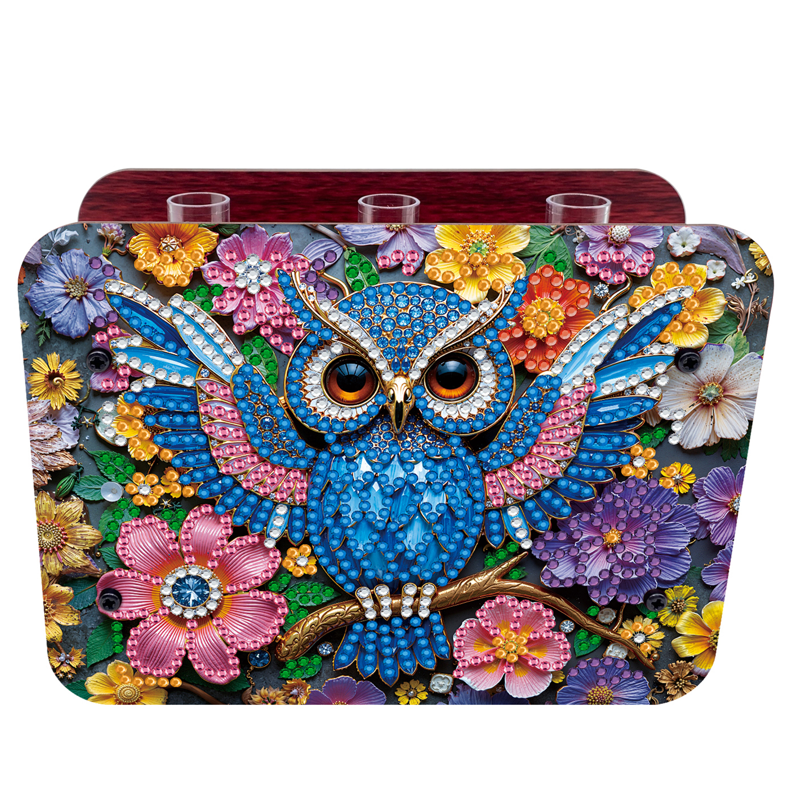 Gem Owl DIY Diamond Painting Wooden Tube Vase for Adults Gift Idea Home Decor