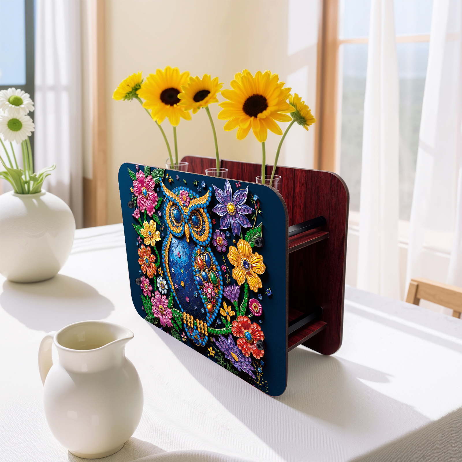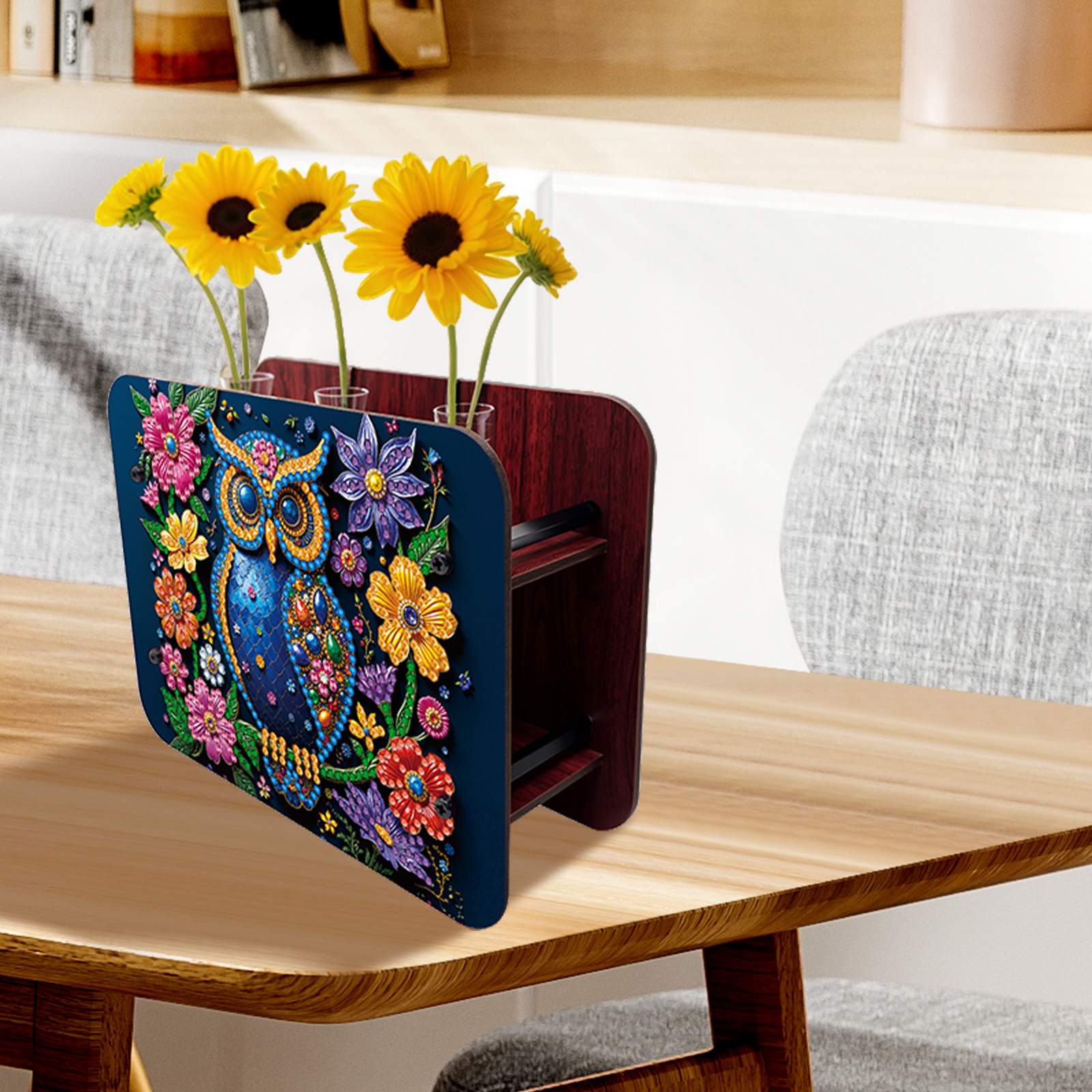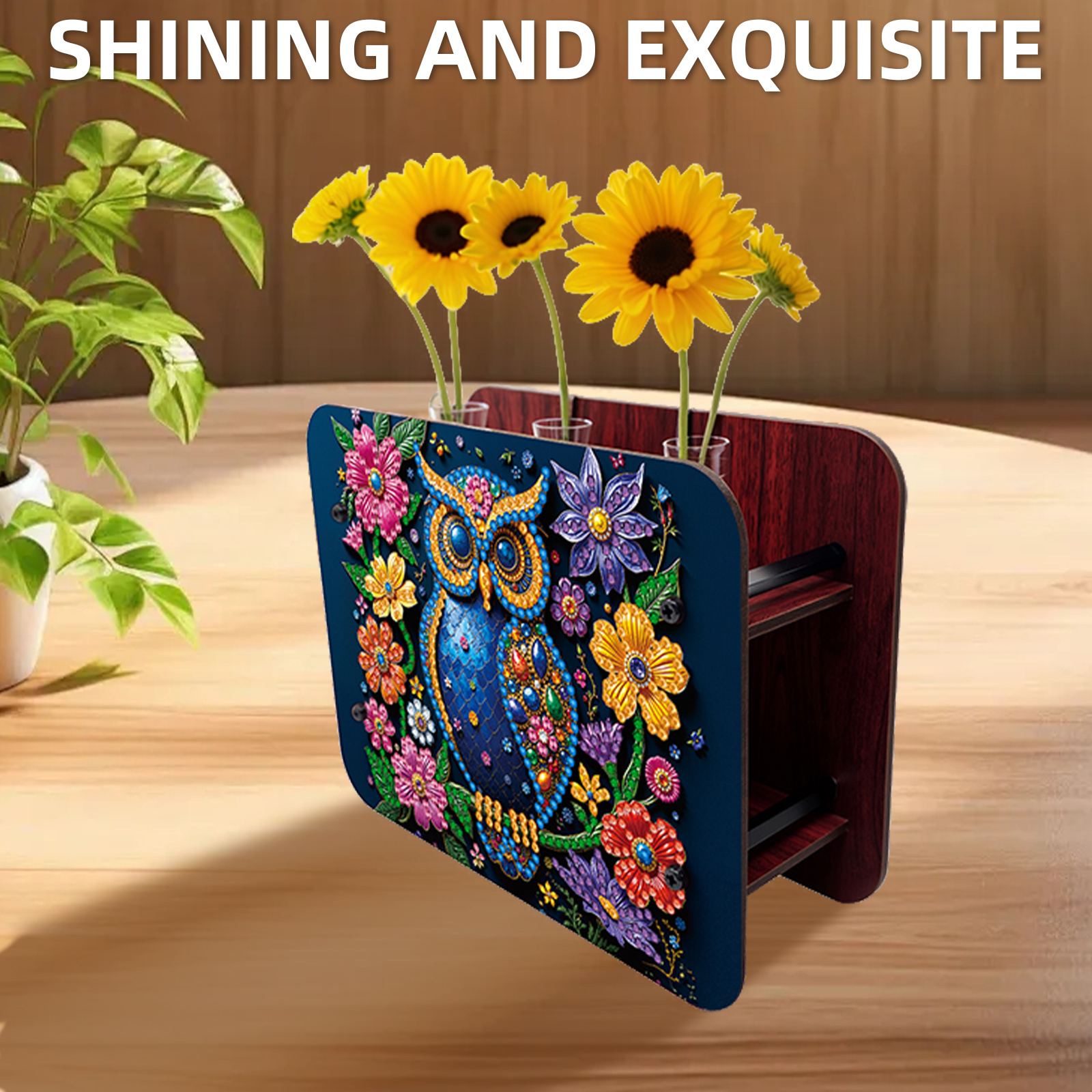 Gem Owl DIY Diamond Painting Wooden Tube Vase for Adults Gift Idea Home Decor