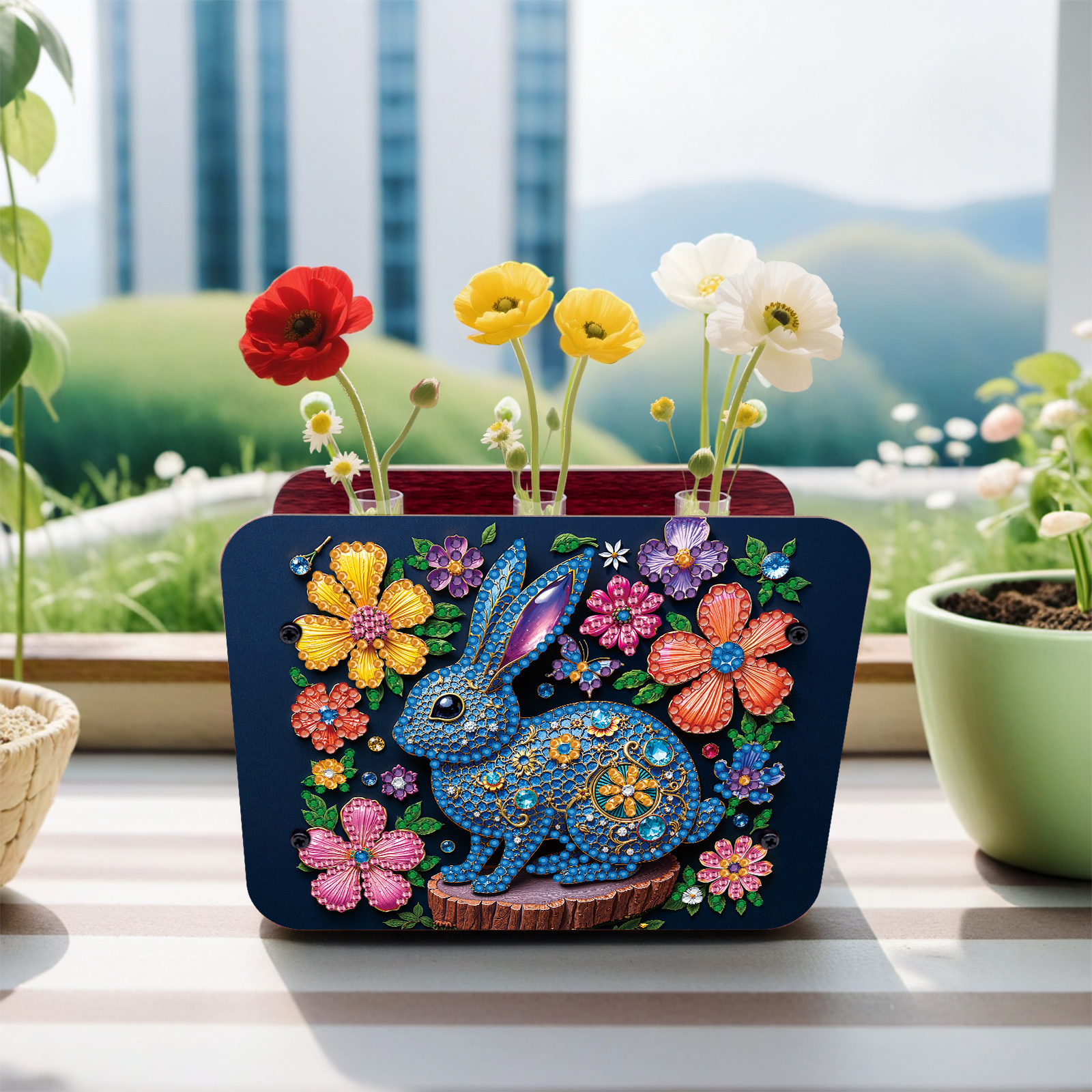 Gem Rabbit DIY Diamond Painting Wooden Tube Vase for Adults Gift Idea Home Decor
