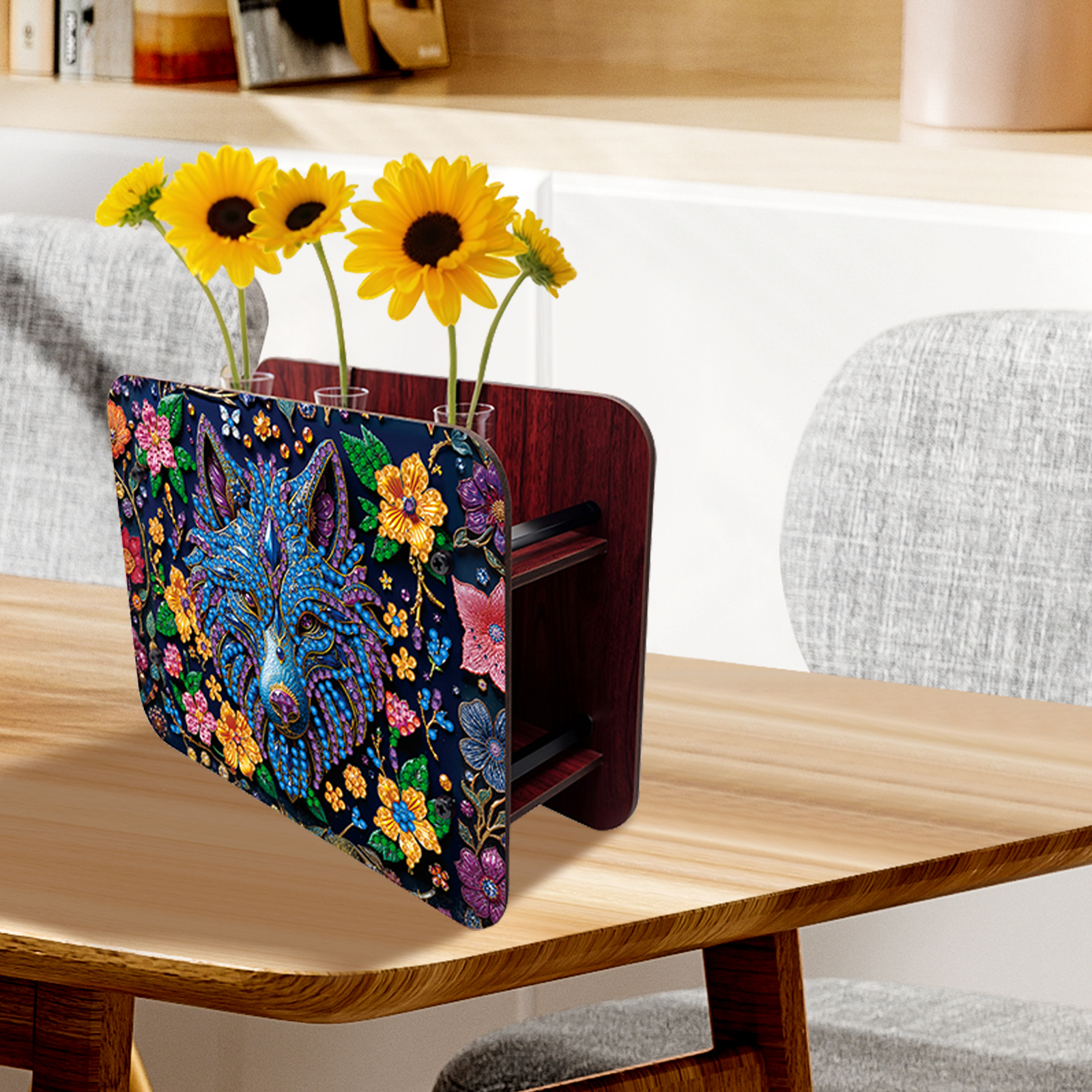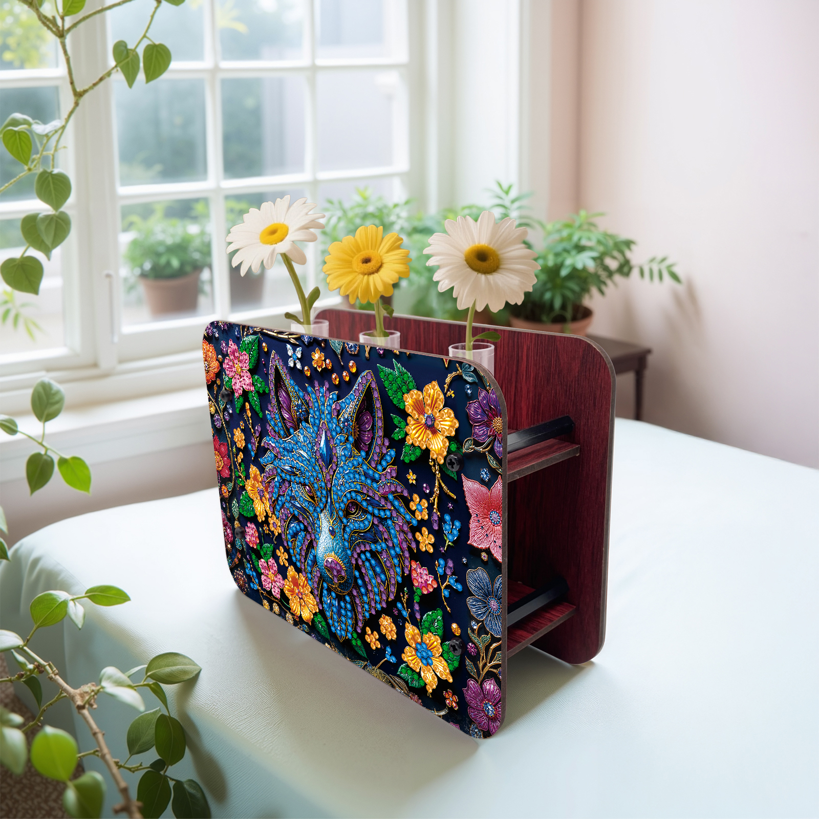 Gem Wolf DIY Diamond Painting Wooden Tube Vase for Adults Gift Idea Home Decor