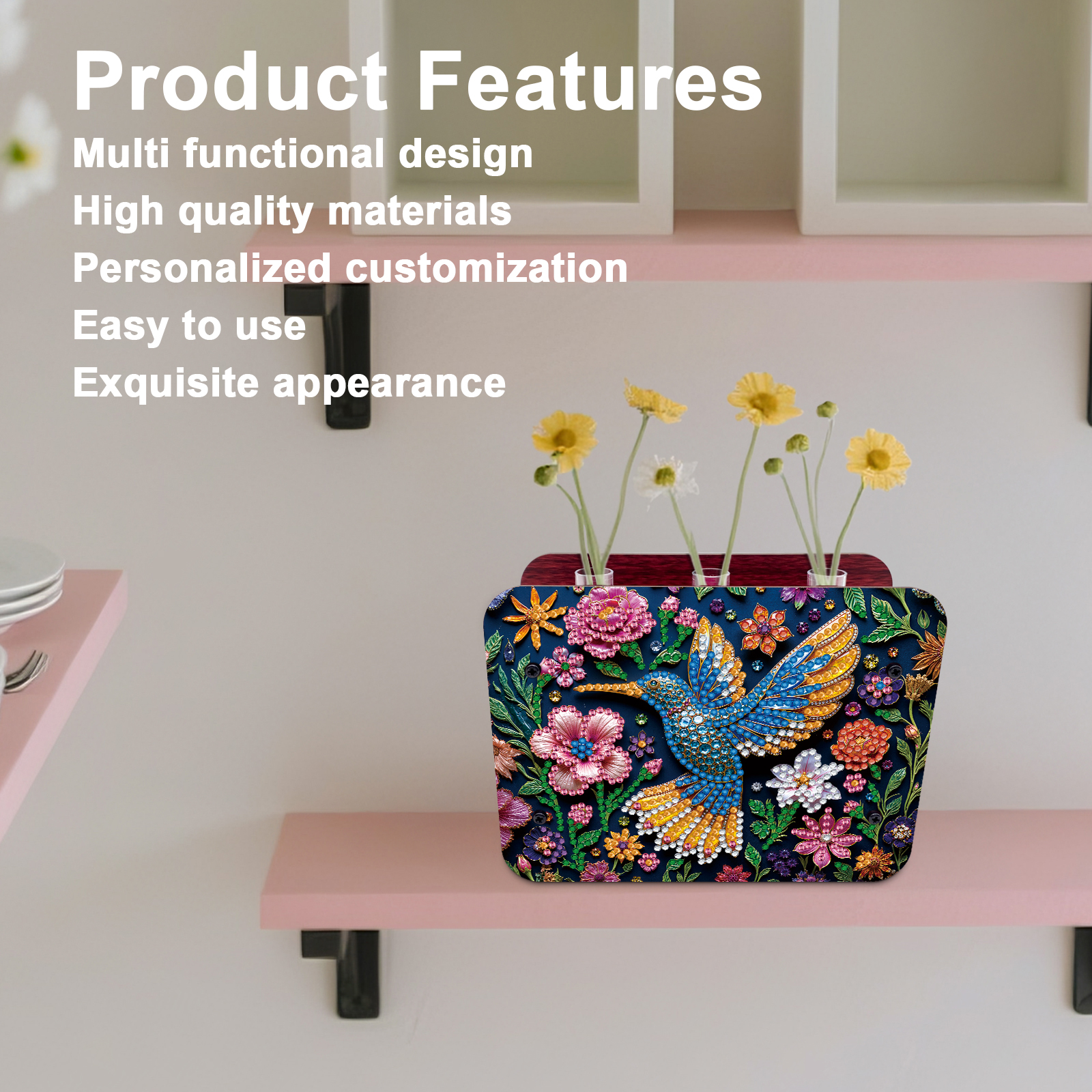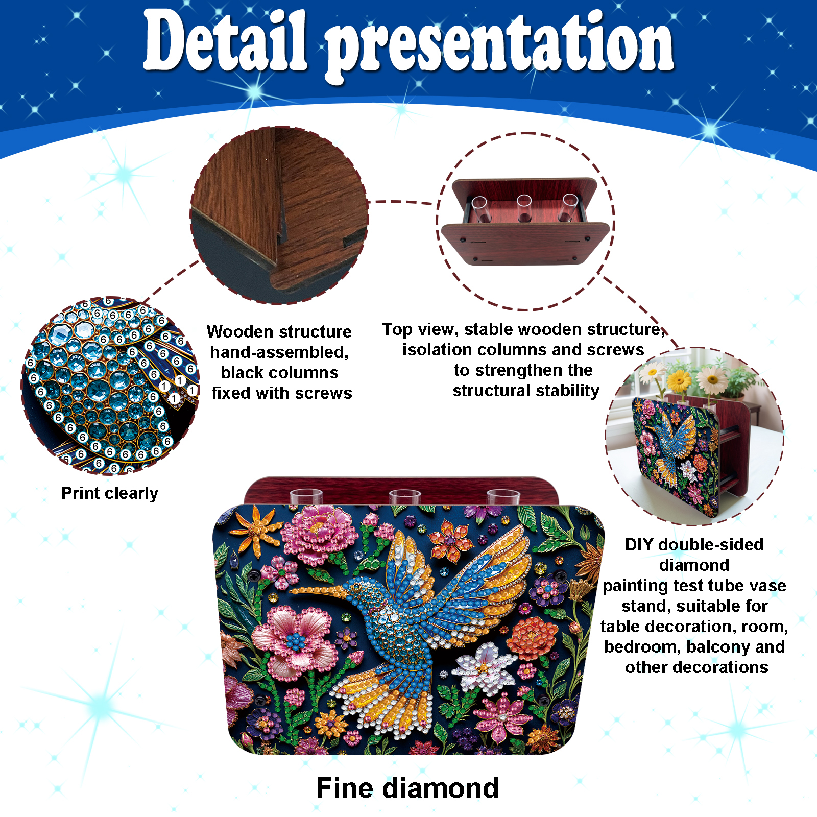 Hummingbird DIY Flower Vase Wooden Double Sided Desktop Diamond Art Kit Decor