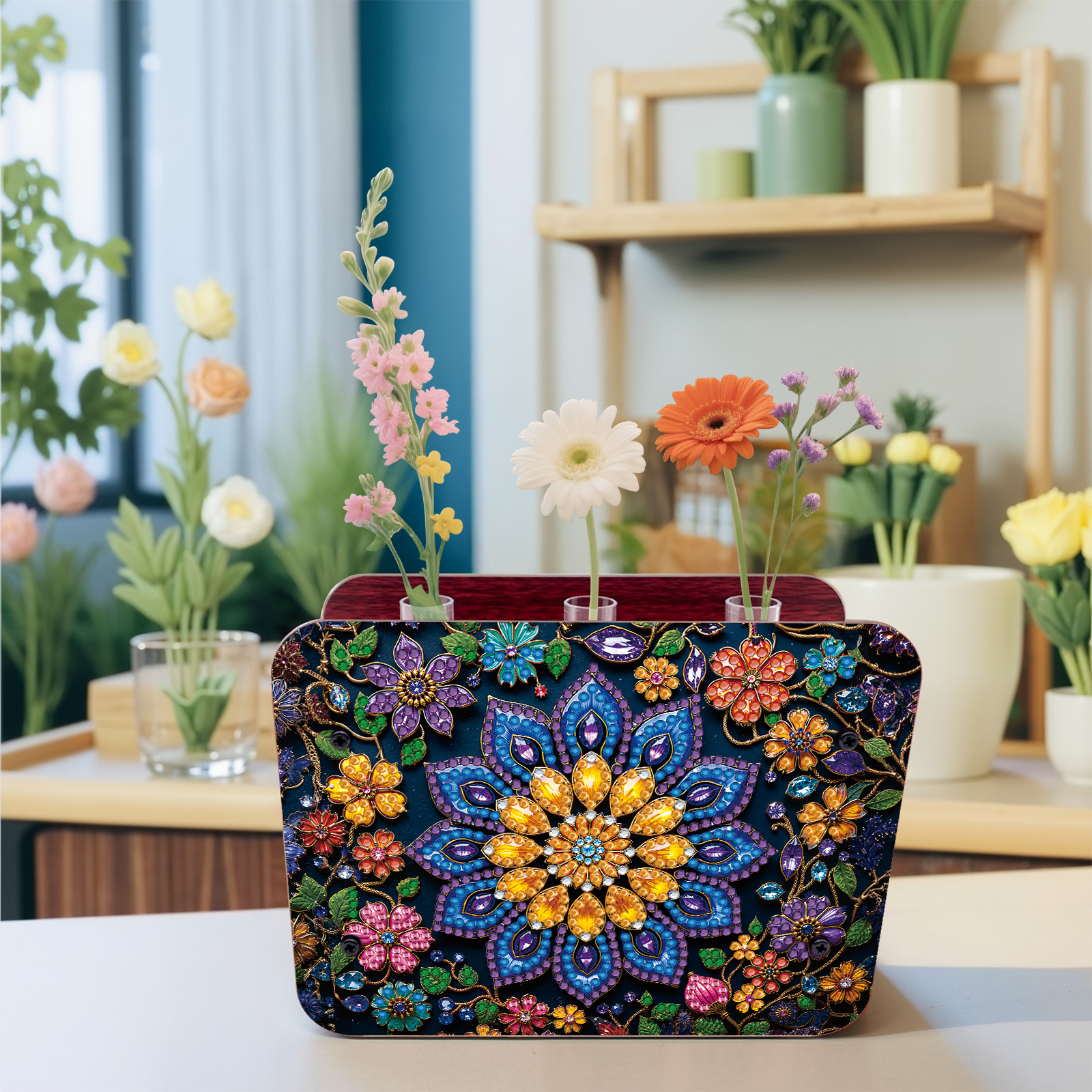 Mandala DIY Flower Vase Wooden Double Sided Desktop Diamond Art Kit Home Decor