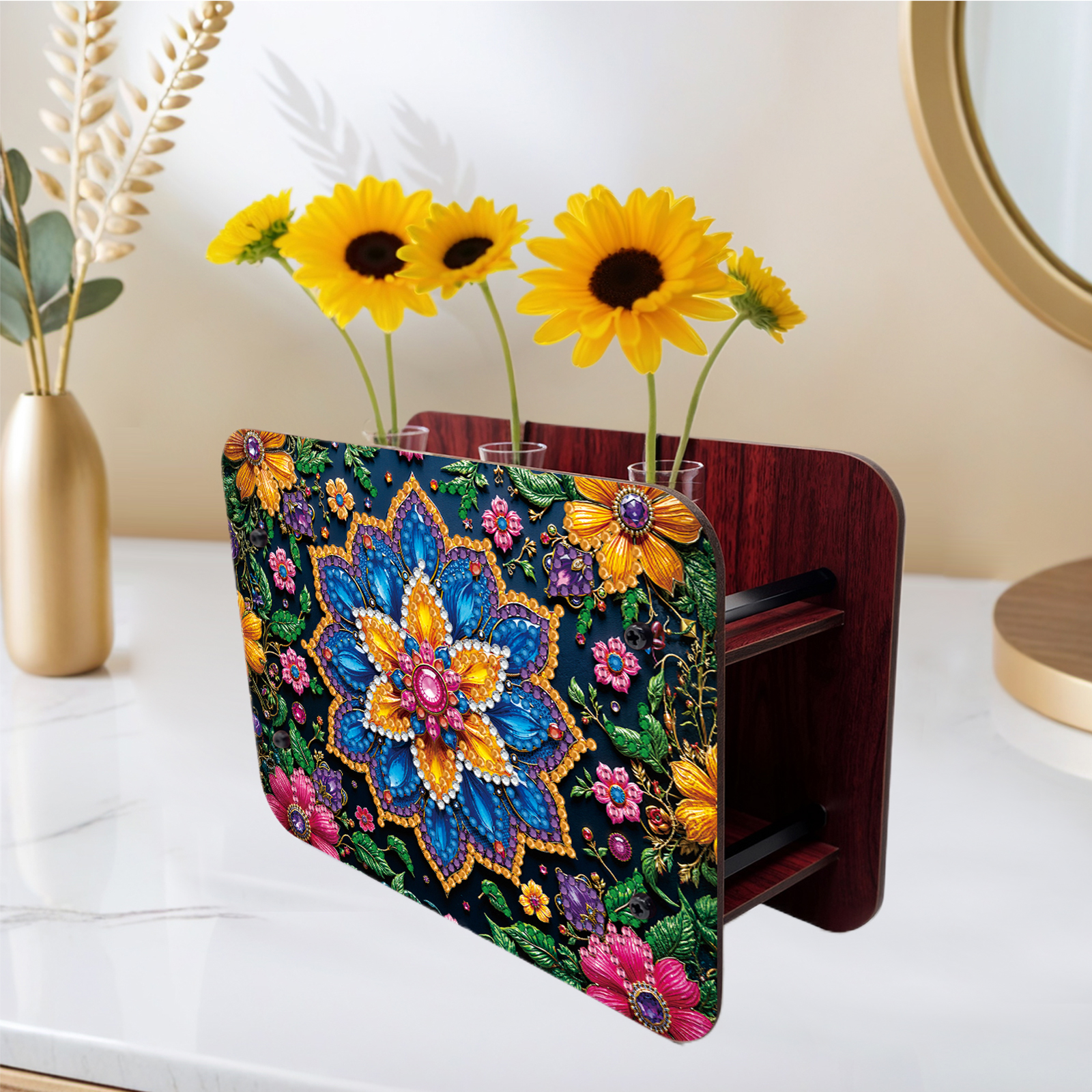 Mandala DIY Flower Vase Wooden Double Sided Desktop Diamond Art Kit Home Decor