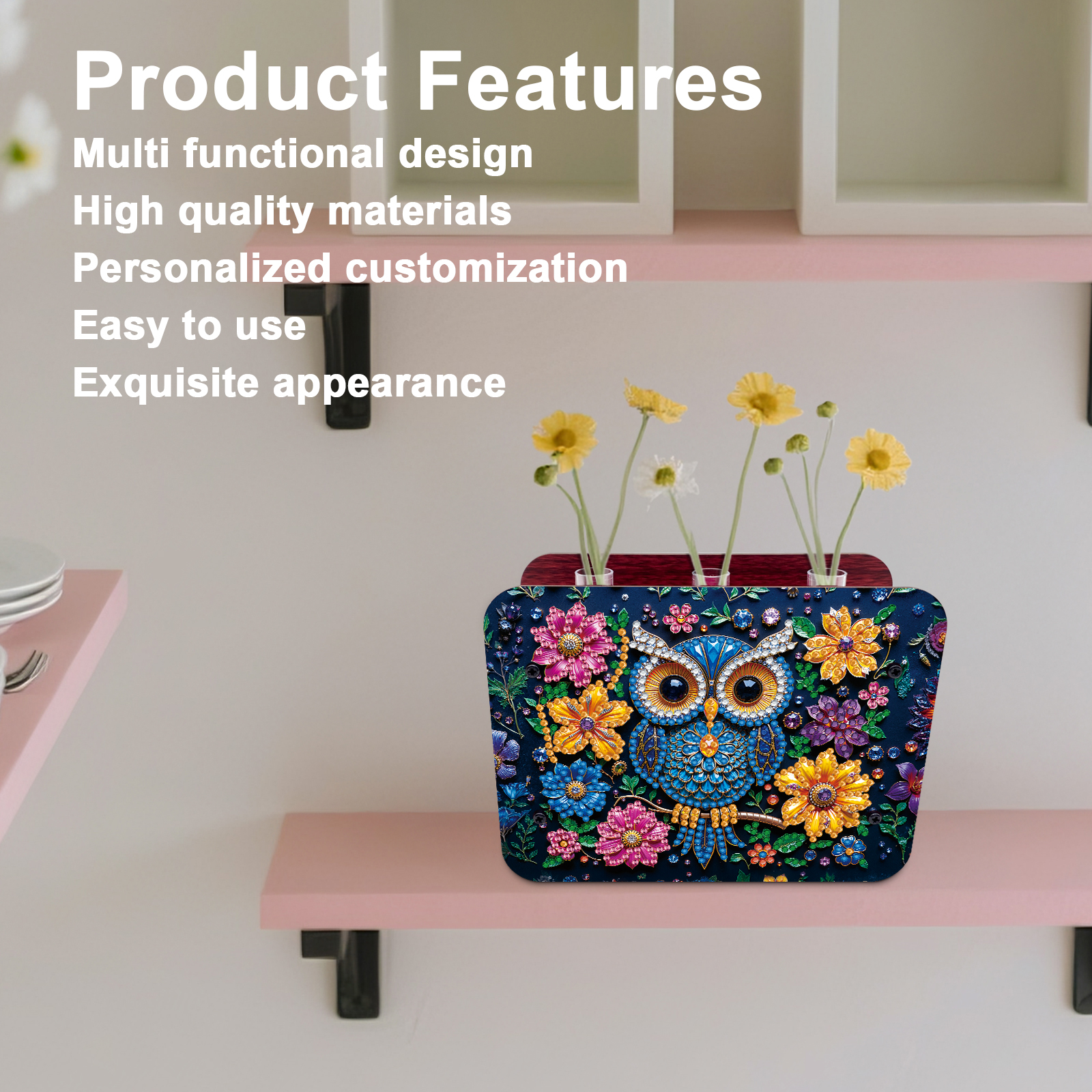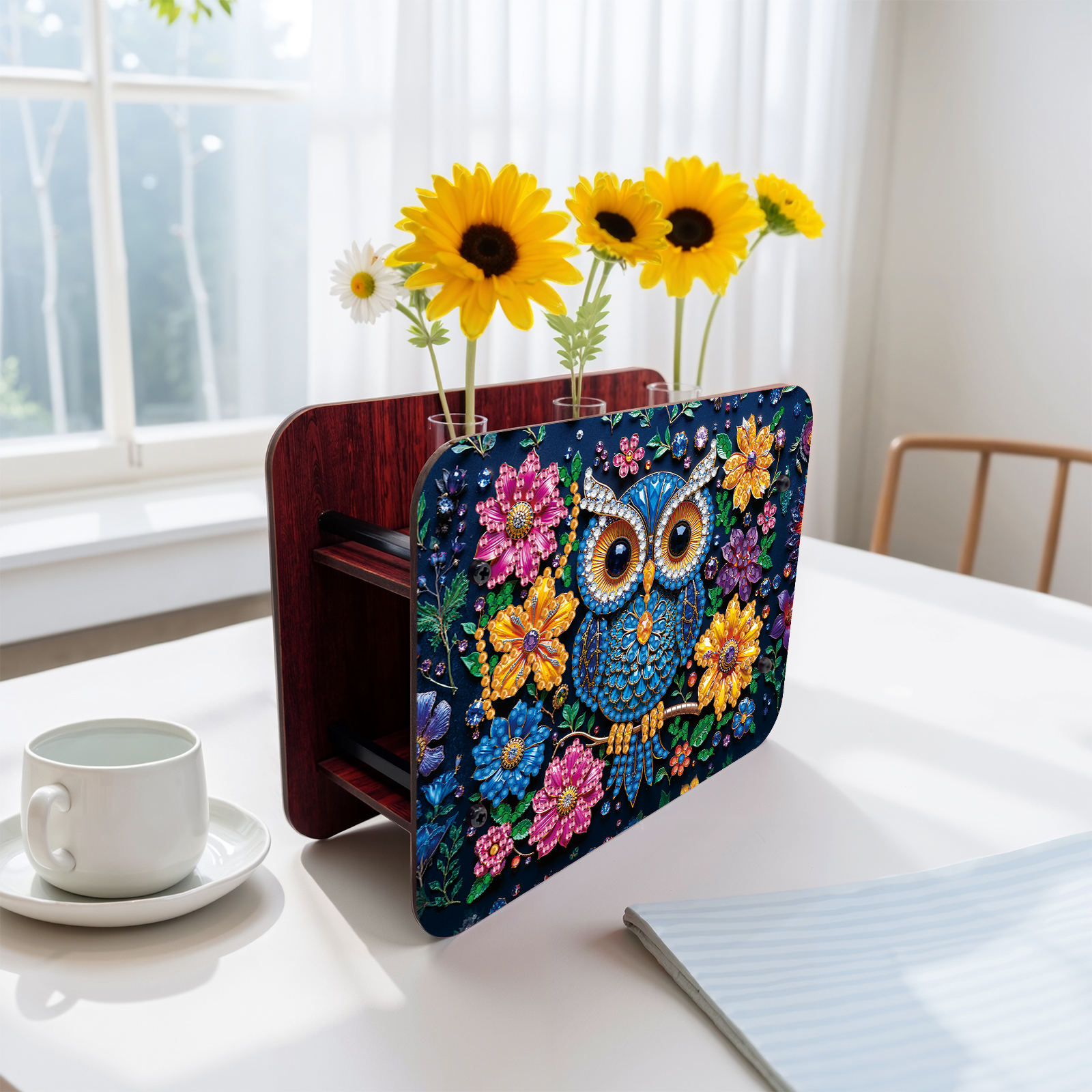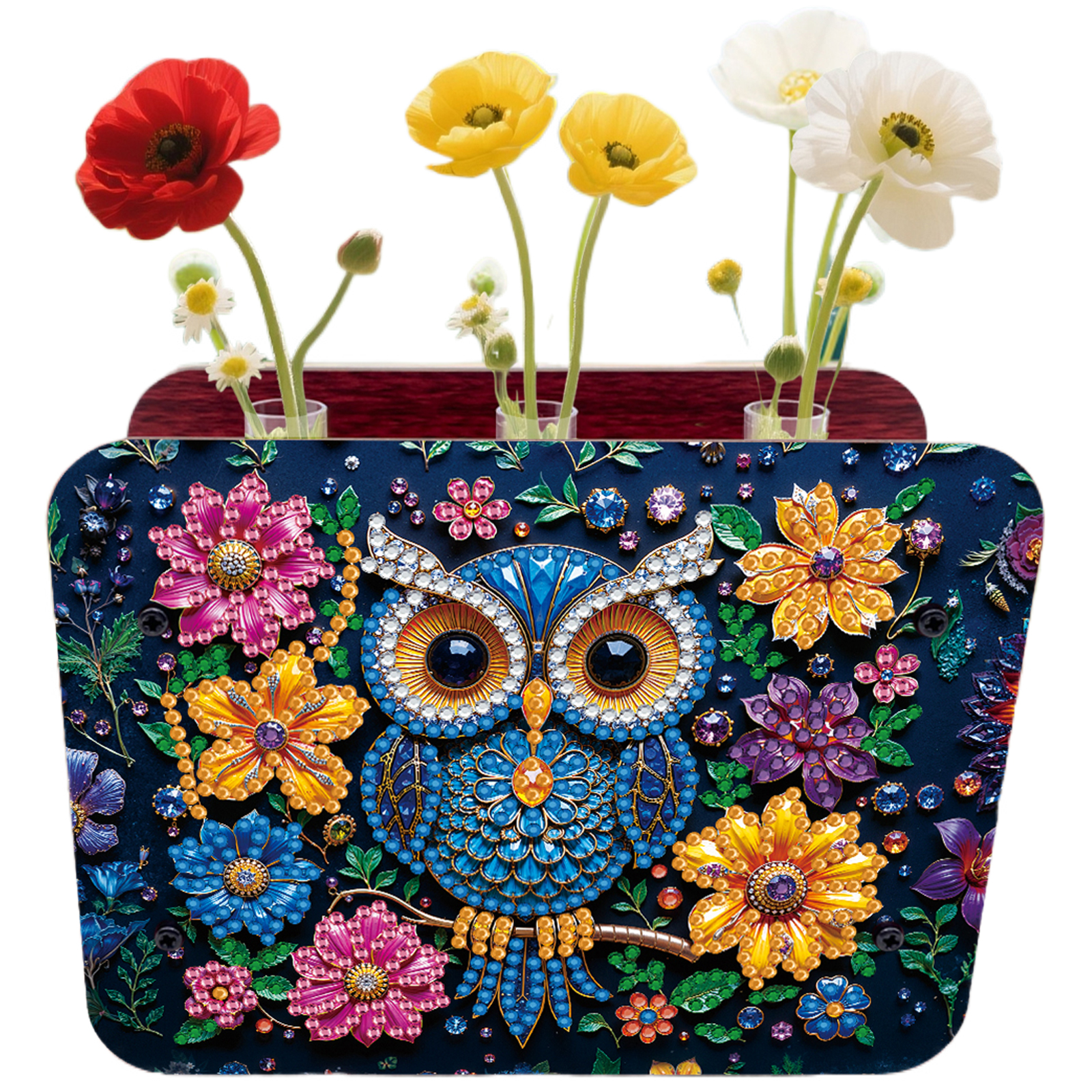 Owl DIY Flower Vase Wooden Double Sided Desktop Diamond Art Kit for Home Decor