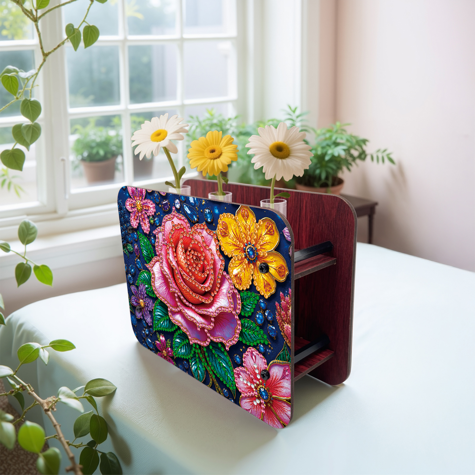 Rose DIY Flower Vase Wooden Double Sided Desktop Diamond Art Kit for Home Decor
