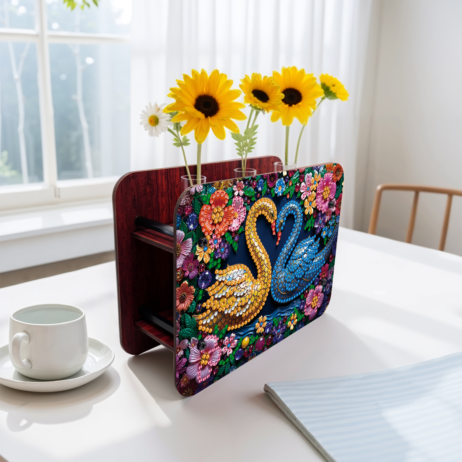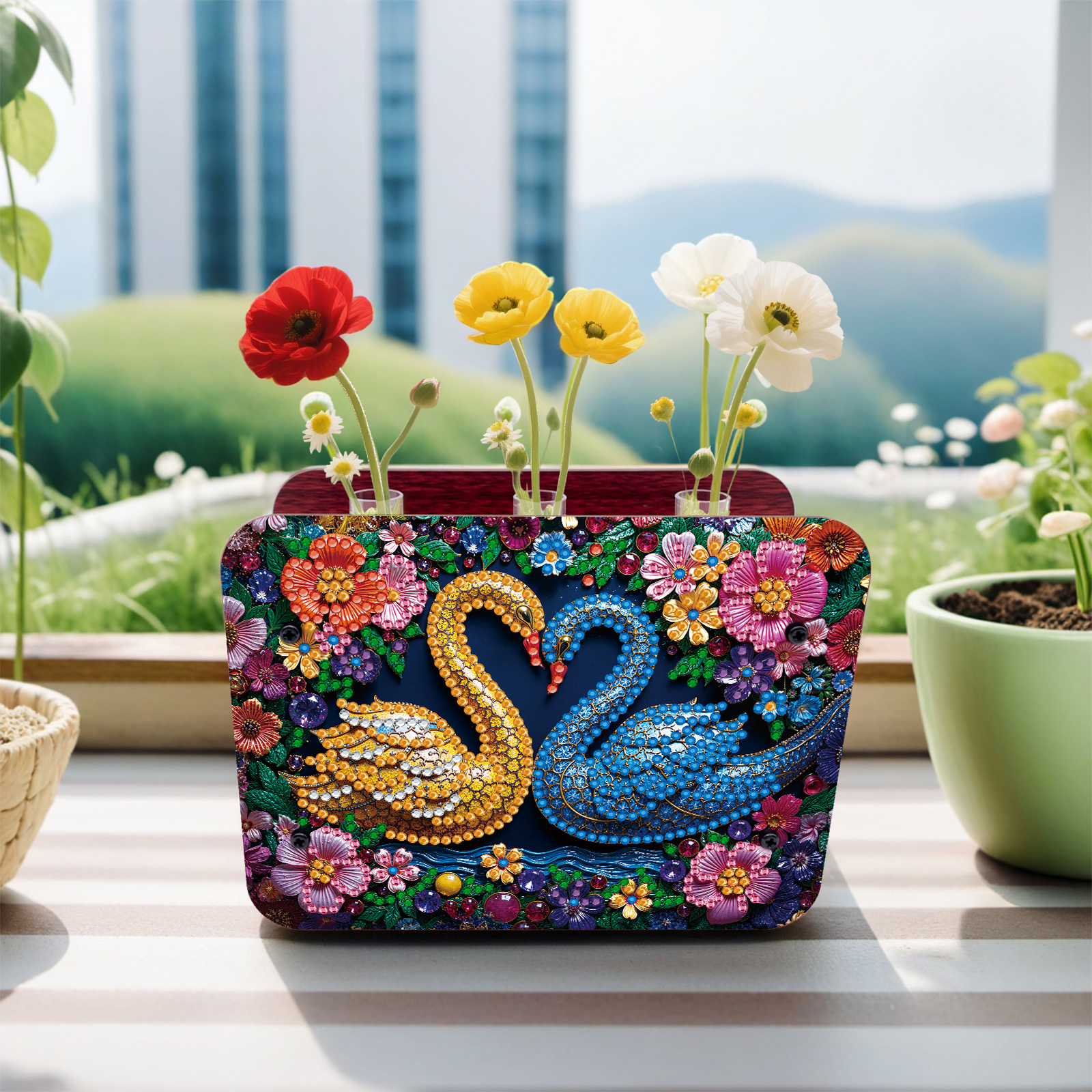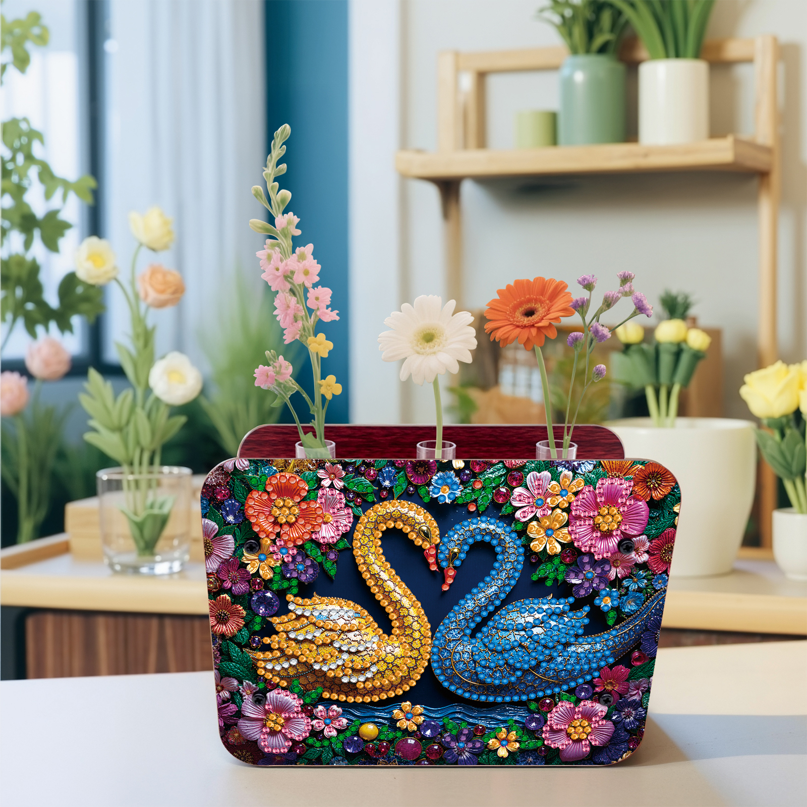 Swan DIY Flower Vase Wooden Double Sided Desktop Diamond Art Kit for Home Decor