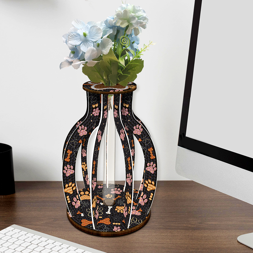 Wooden Paws Diamond Painting Rhinestones Vase 5D DIY Diamond Art Flower Vase