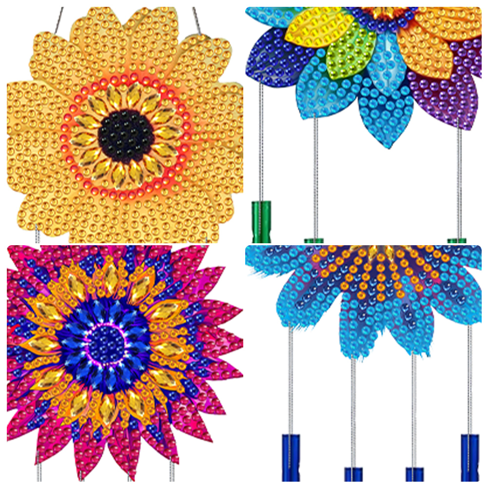 4Pcs Acrylic Colorful Flower Diamond Painting Wind Chimes DIY Crystal Wind Chime