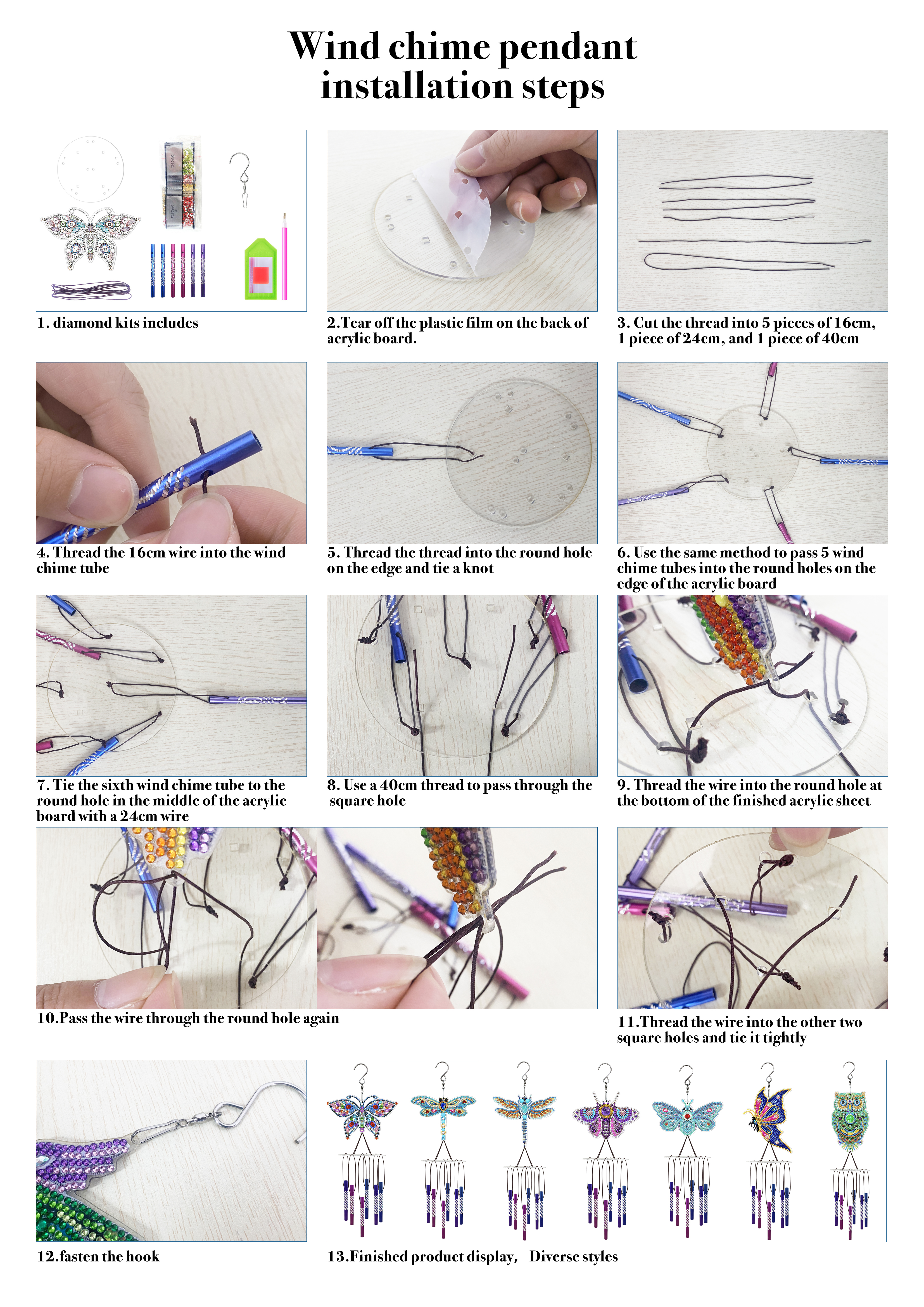 PREMIUM QUALITY: Our DIY diamond painted decorative wind chimes are made of high quality aluminum tube. It is corrosion resistant. This medium sized bell is 33cm long from the S hanging to the bottom. They are lightweight and easy to hang.