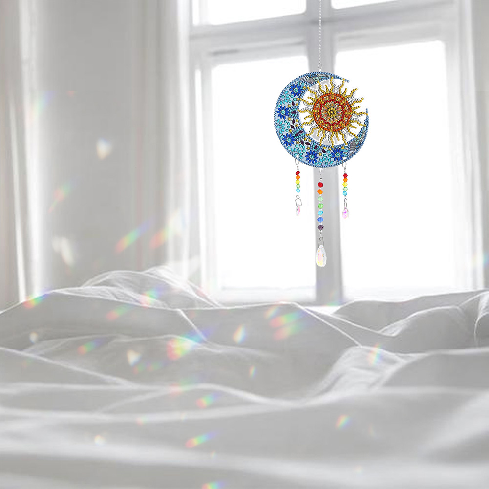 DIY Diamond Painting Light Catcher Hanging Crystal Wind Chime (Sun Moon)