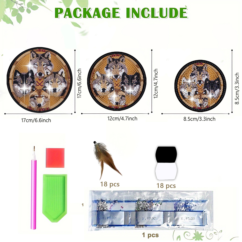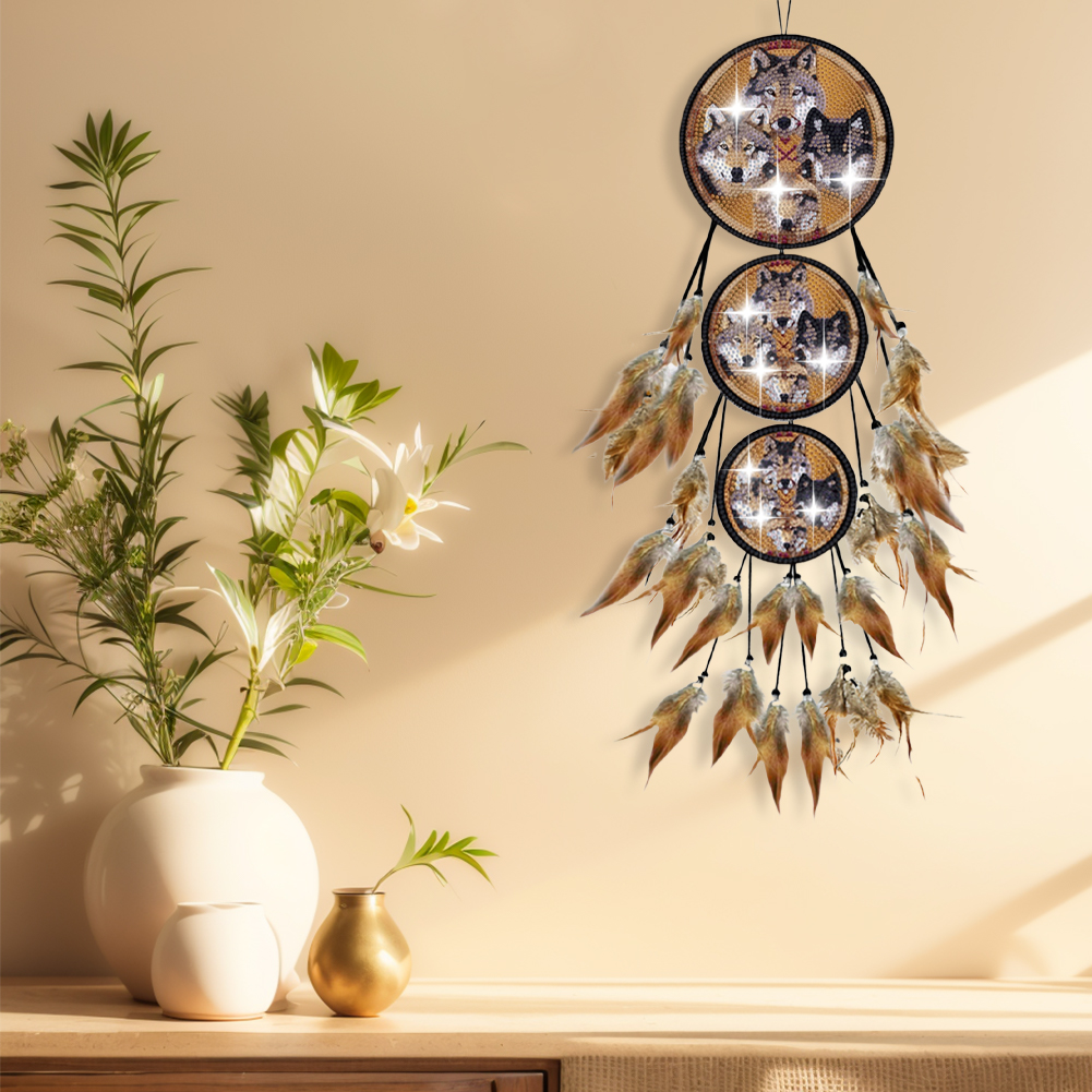 DIY Wolf Feather Wind Chime Diamond Art Hanging Pendant for Home Window Decor