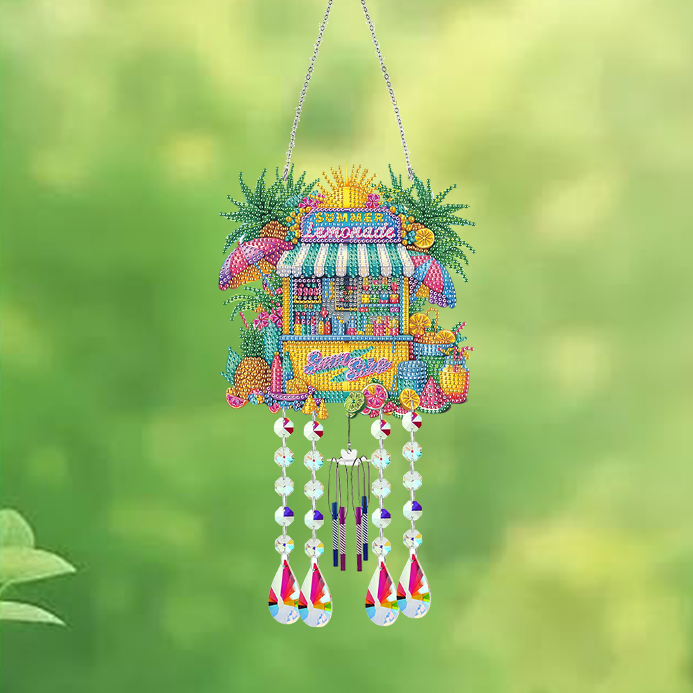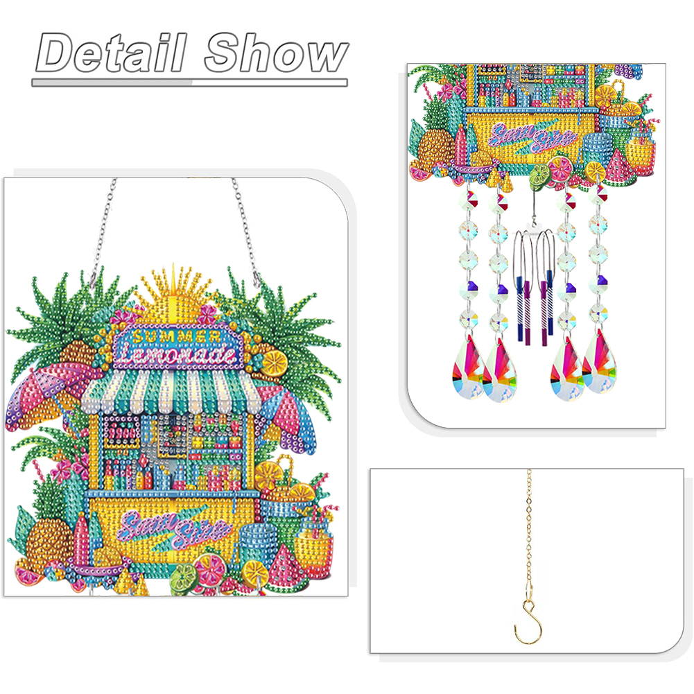 Double Sided Soda Shop 5D DIY Diamond Art Painting Wind Bell Hanging Sign Decor