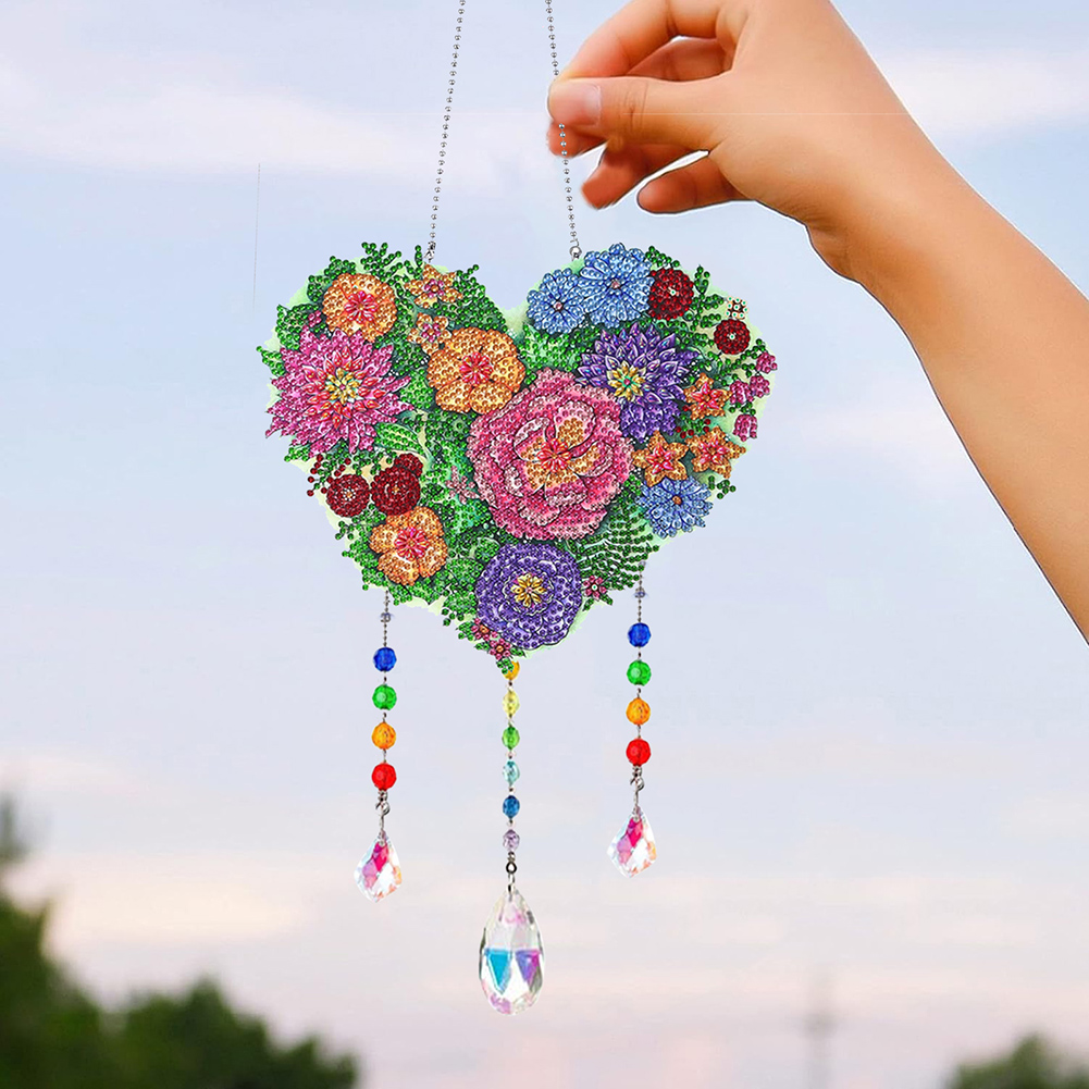 Flower Wind Chimes Heart Diamond Crystal Painting Ornaments for Home Wall Decor