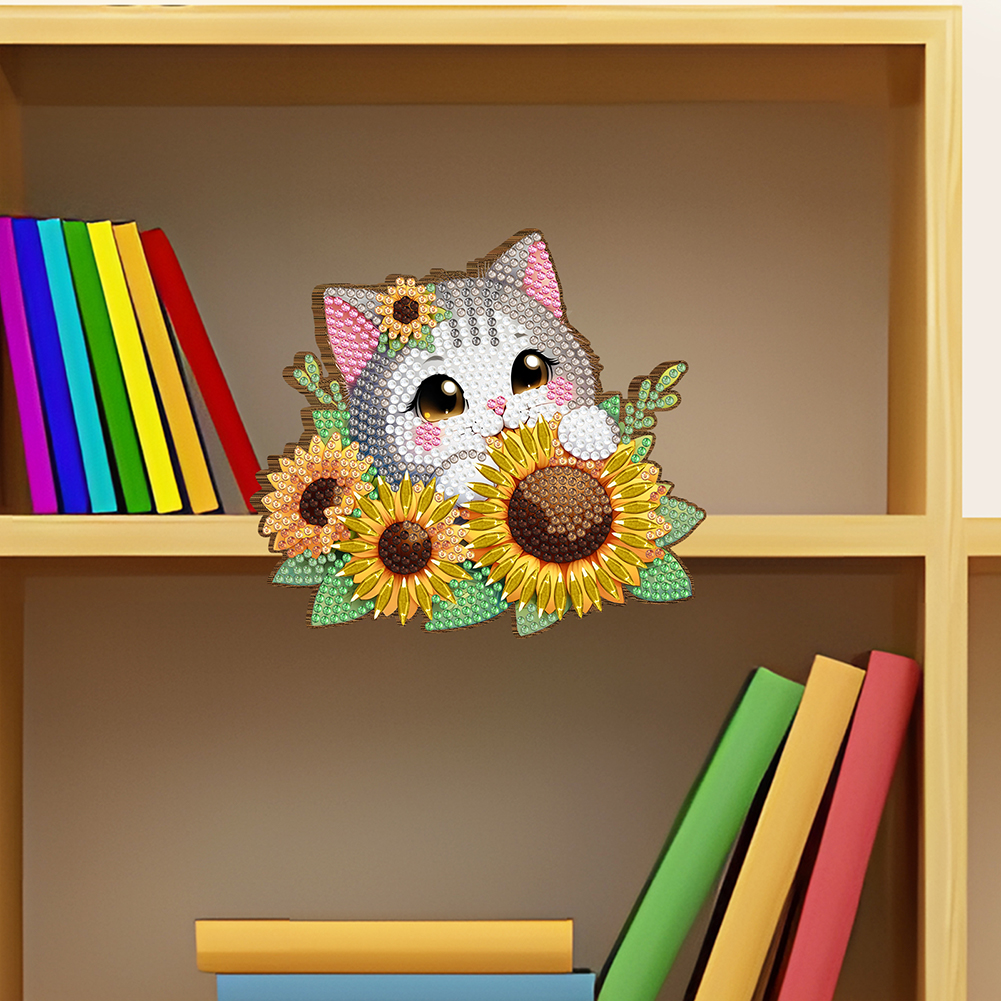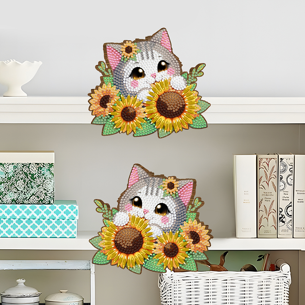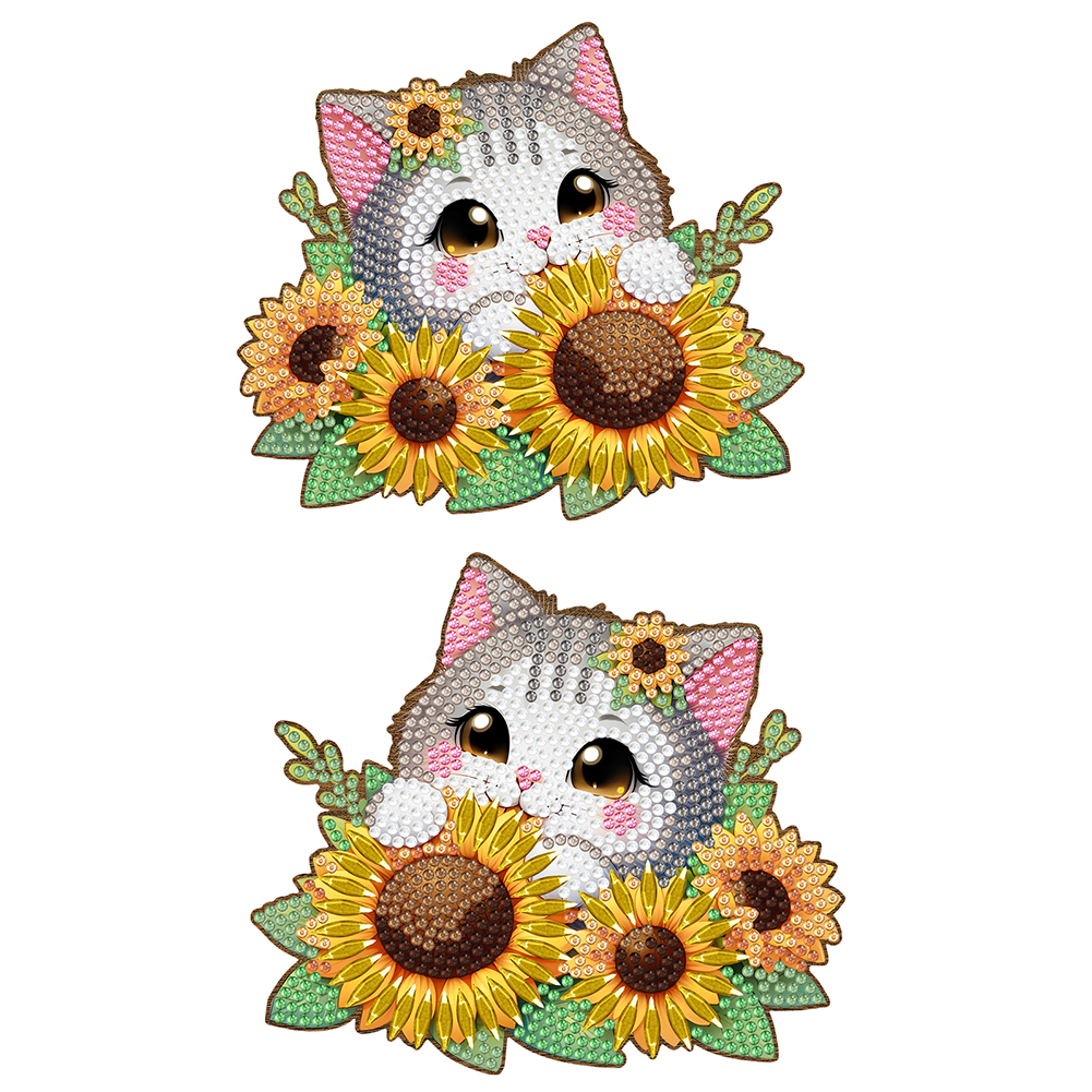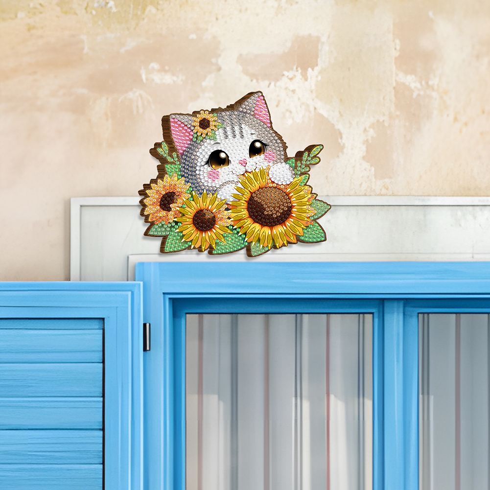2Pcs Sunflower Cat Diamond Painting Door Corner Sign Rhinestone Door Frame Decor