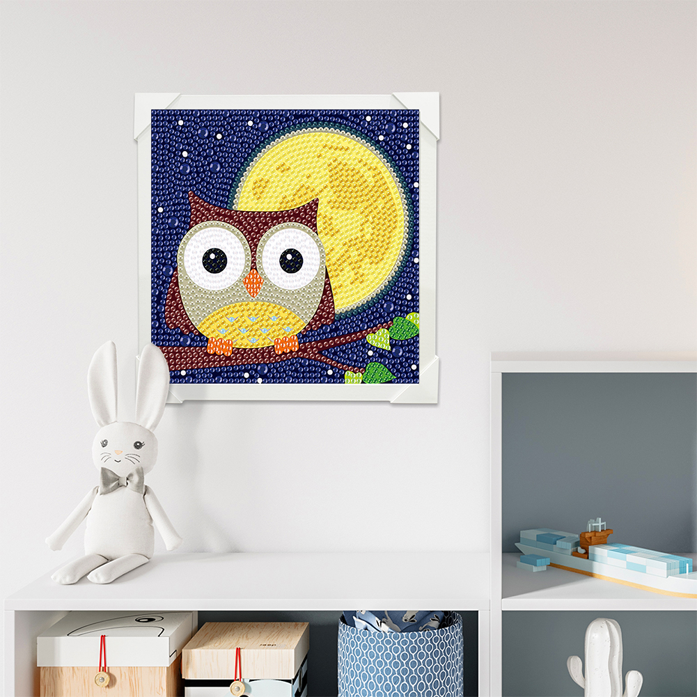 5D DIY Full Round Crystal Rhinestone Diamond Painting Owl Kit Home Decor Art Craft For Kid(Canvas|15*15cm)【with Wooden Frame】