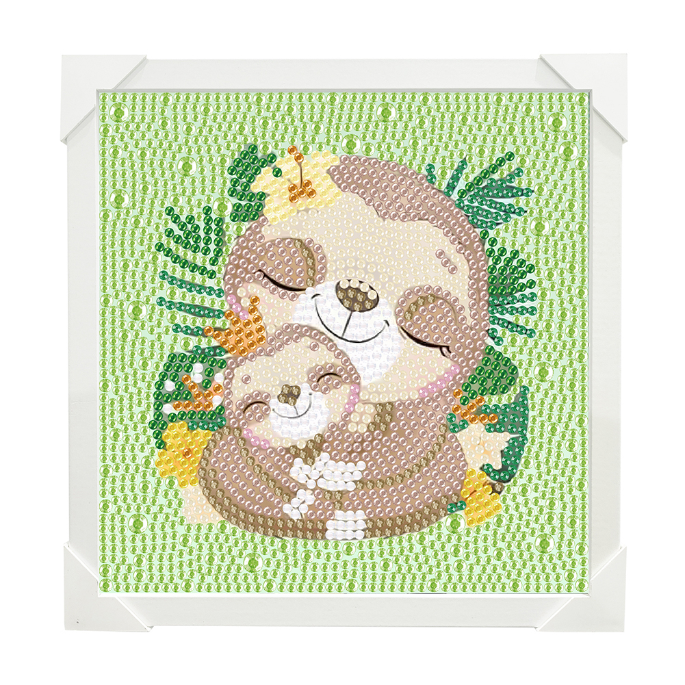 5D DIY Full Round Crystal Rhinestone Diamond Painting Sloth Kit Home Decor Art Craft For Kid(Canvas|15*15cm)【with Wooden Frame】