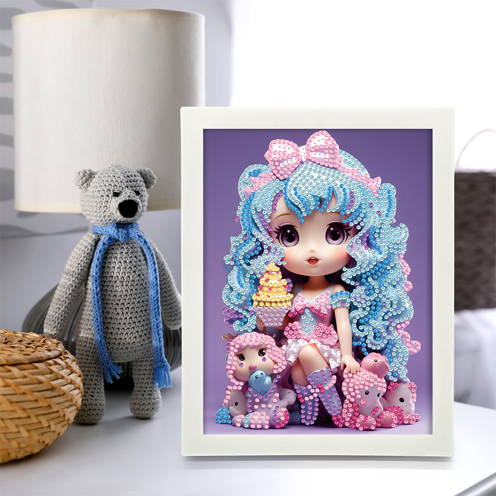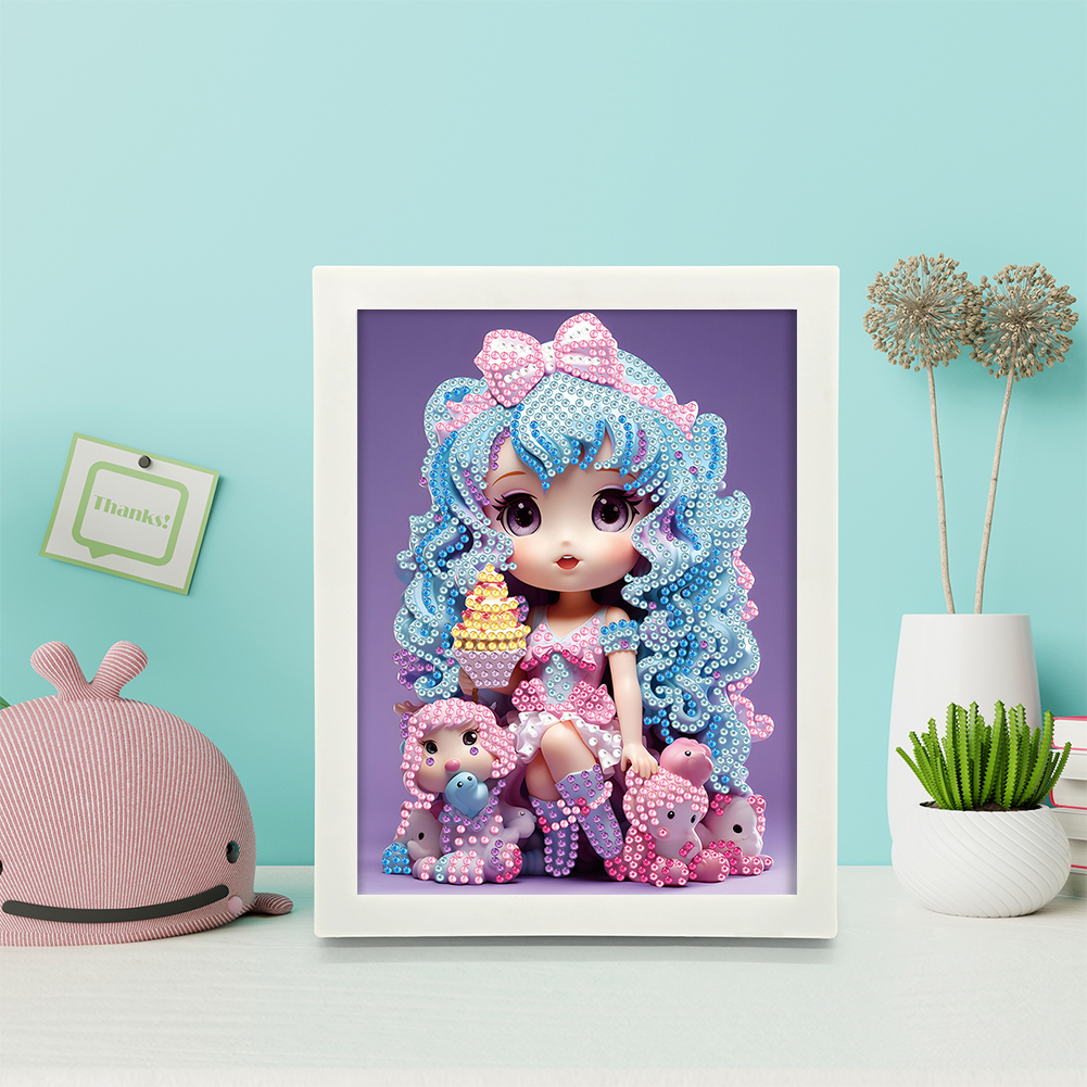 Diamond Painting - Partial Crystal Rhinestone Drill - Cartoon Girl(Canvas|15*20cm)【with Plastic Frame】