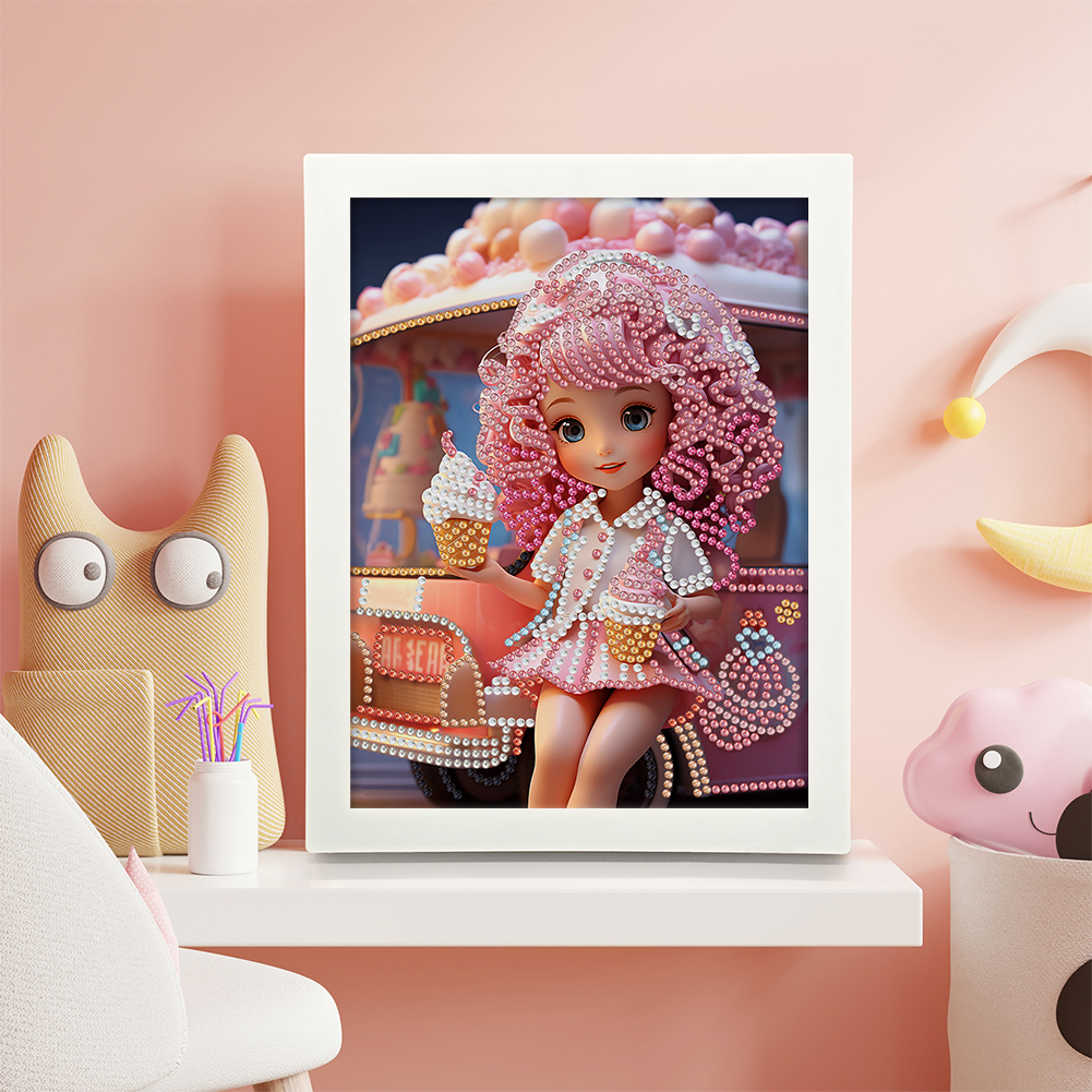 Diamond Painting - Partial Crystal Rhinestone Drill - Cartoon Girl(Canvas|15*20cm)【with Plastic Frame】